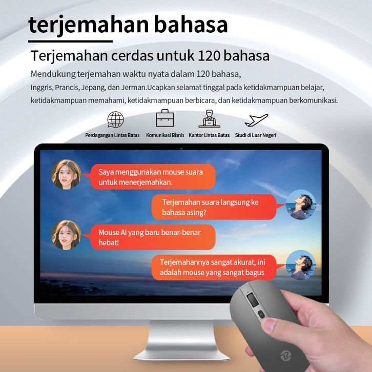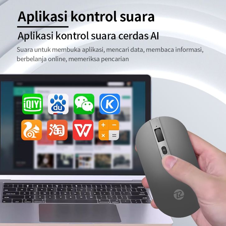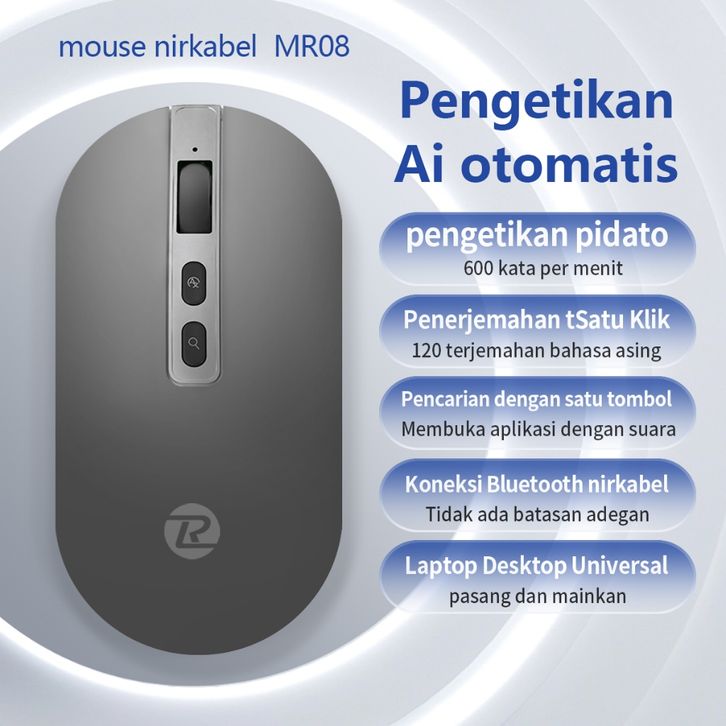 Mouse AI RULINK MR08, Mouse Cerdas Pengenal Suara, Wireless and Bluetooth, Silent Click, Rechargeable.