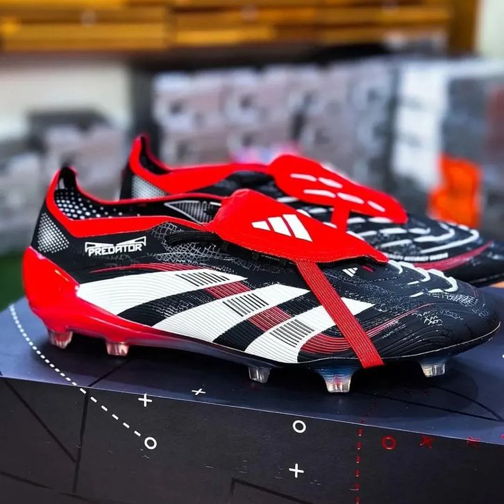 Sepatu Bola Adidas Predator Elite Tongue FG Black White Vivid Red