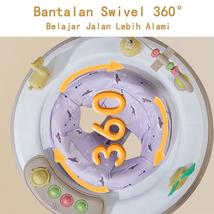 BABY WALKER BAYI DENGAN MUSIK DAN MAINAN, BAHAN PLASTIK TAHAN LAMA UNTUK USIA 6-18 BULAN