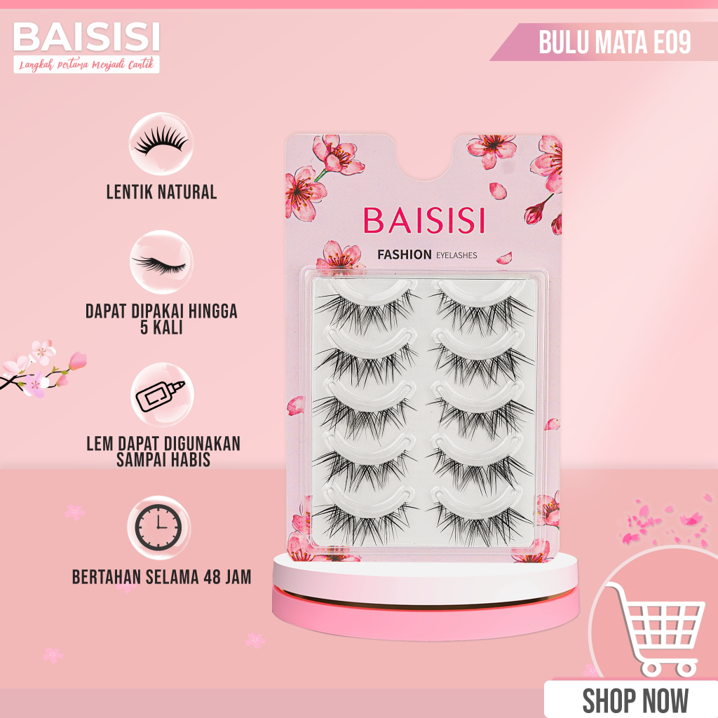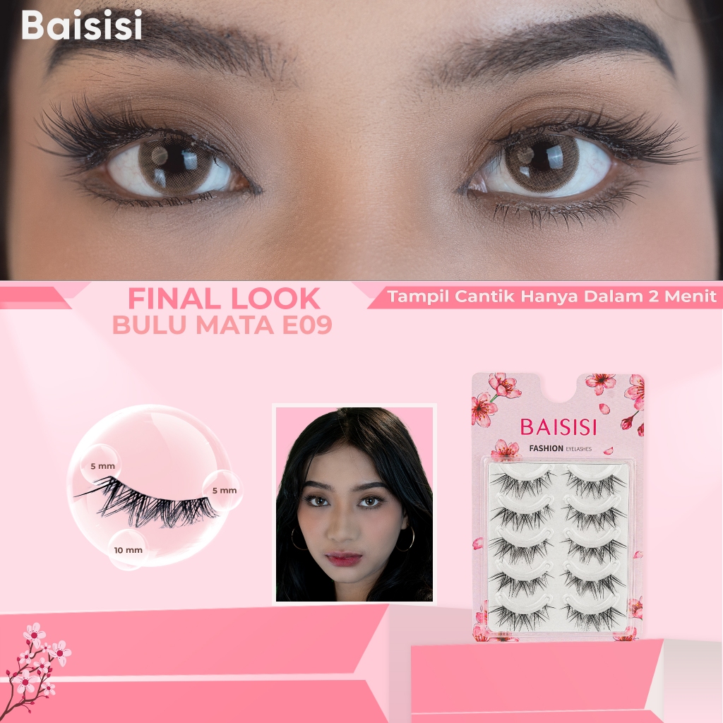 BAISISI Serat Kapas Premium Baisisi E09 Peri Bulu Mata Palsu + Lem Bulu Mata Eyelash Extention | Eye Make Up | Douyin La