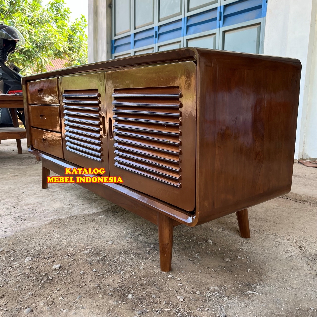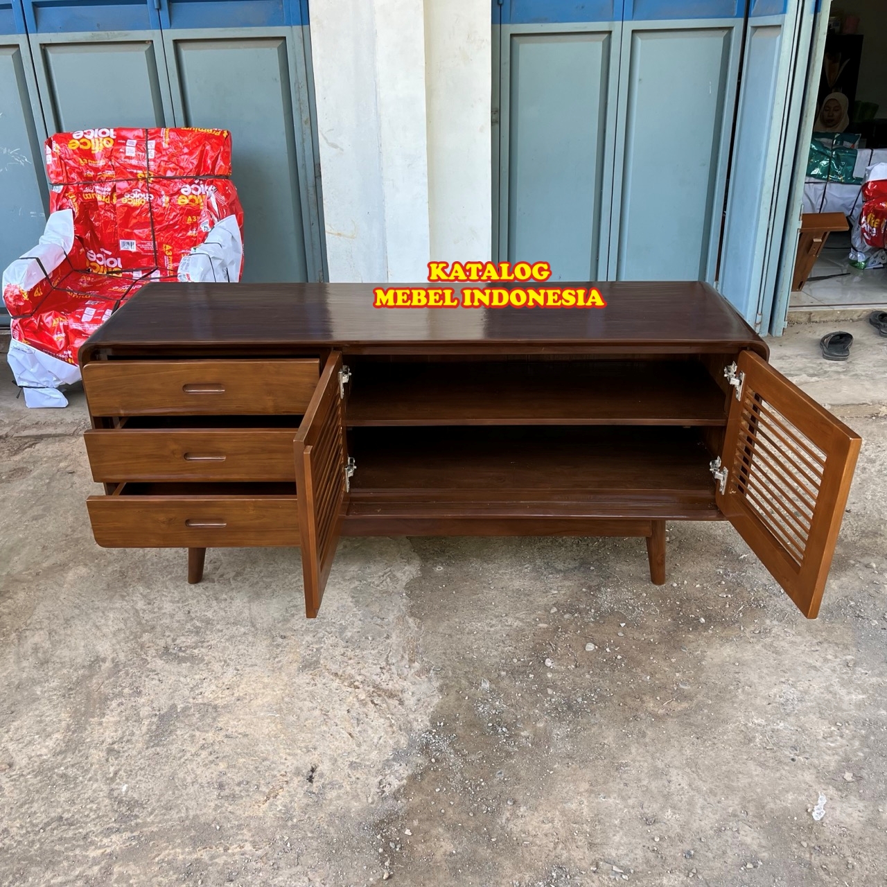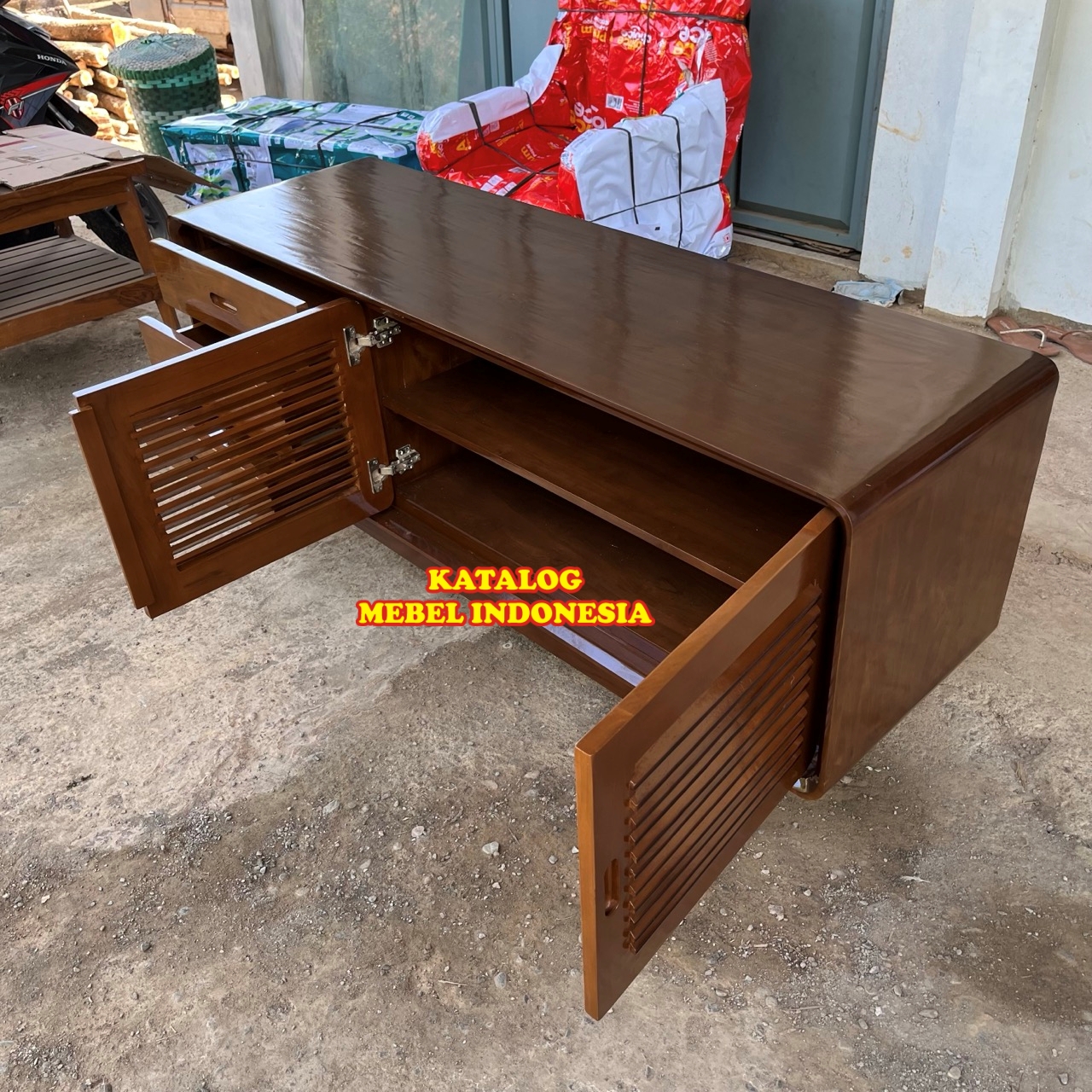 Meja TV Jati Minimalis Pintu Krepyak Model Terlaris Rak TV Retro Produksi Mebel Jepara Furniture