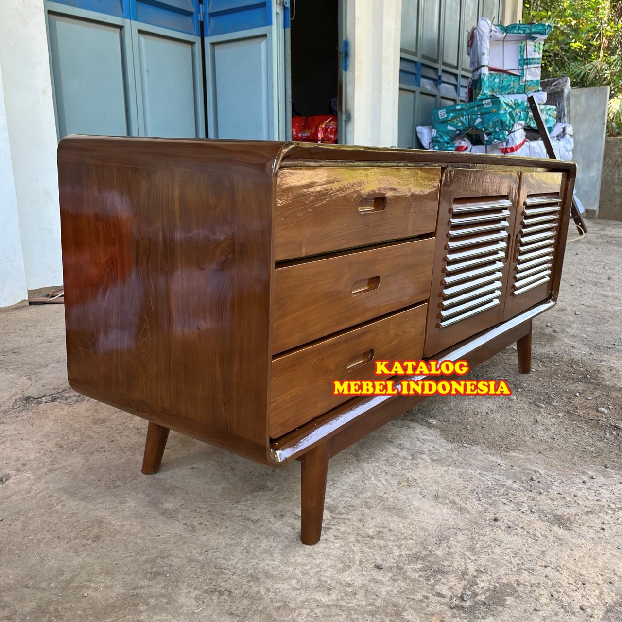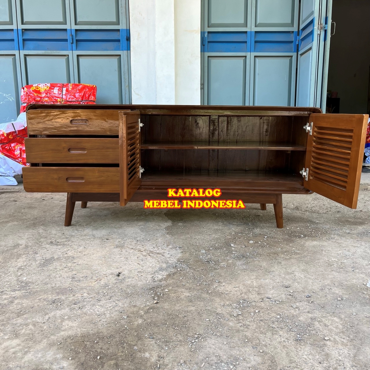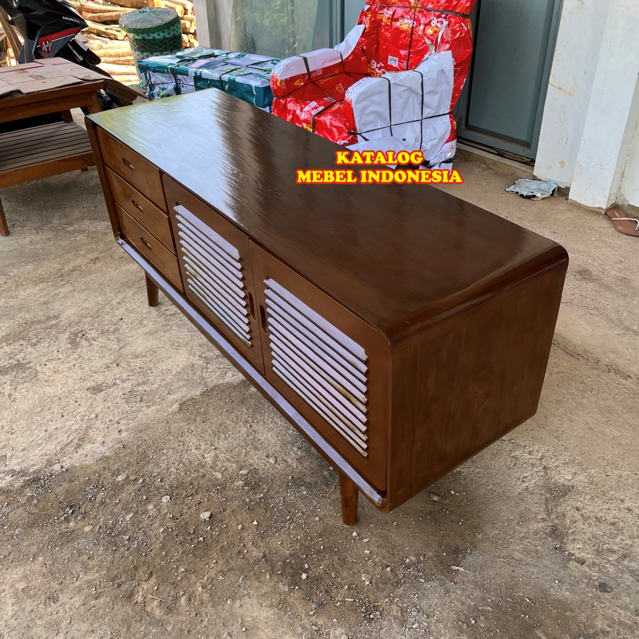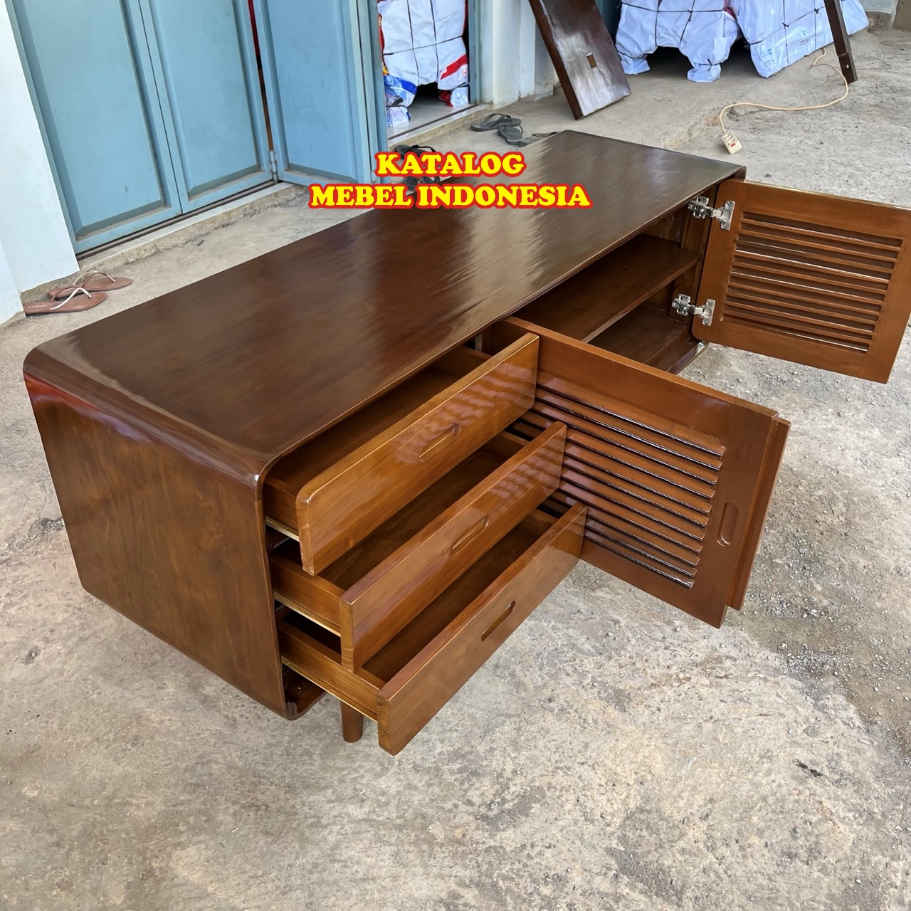 Meja TV Jati Minimalis Pintu Krepyak Model Terlaris Rak TV Retro Produksi Mebel Jepara Furniture