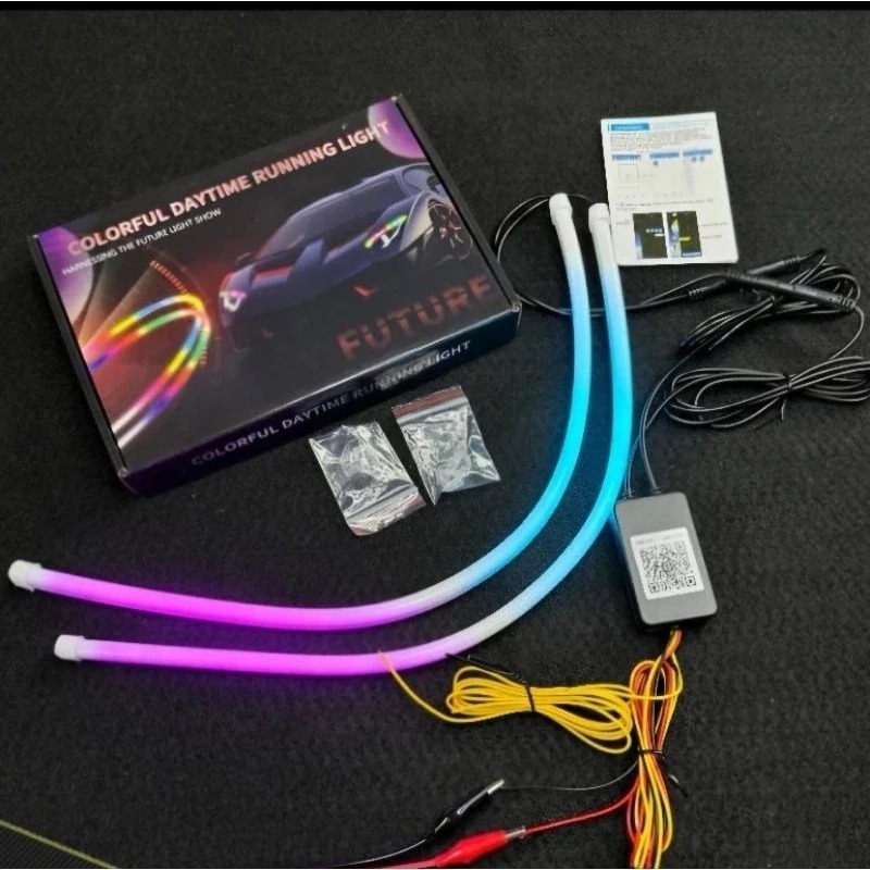 Lampu LED DRL Alis Flexibel RGB APP 30 cm Welcome + RGB Matrix Mobil Motor Selang Fungsi Sein Rem Senja Type Premium