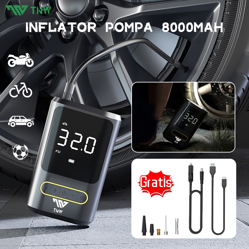 TNW CI10 Car Air Pump Tire Inflator Portable Pompa Ban Mobil dan Motor Mini Pompa Angin Elektrik 8000mAh