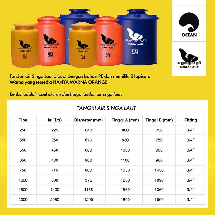 Termurah&Terbaru✅ TOREN AIR / TANDON AIR / TANGKI AIR 250 350 500 650 750 1000 1500 2000 Liter SINGA LAUT (KHUSUS ARMADA