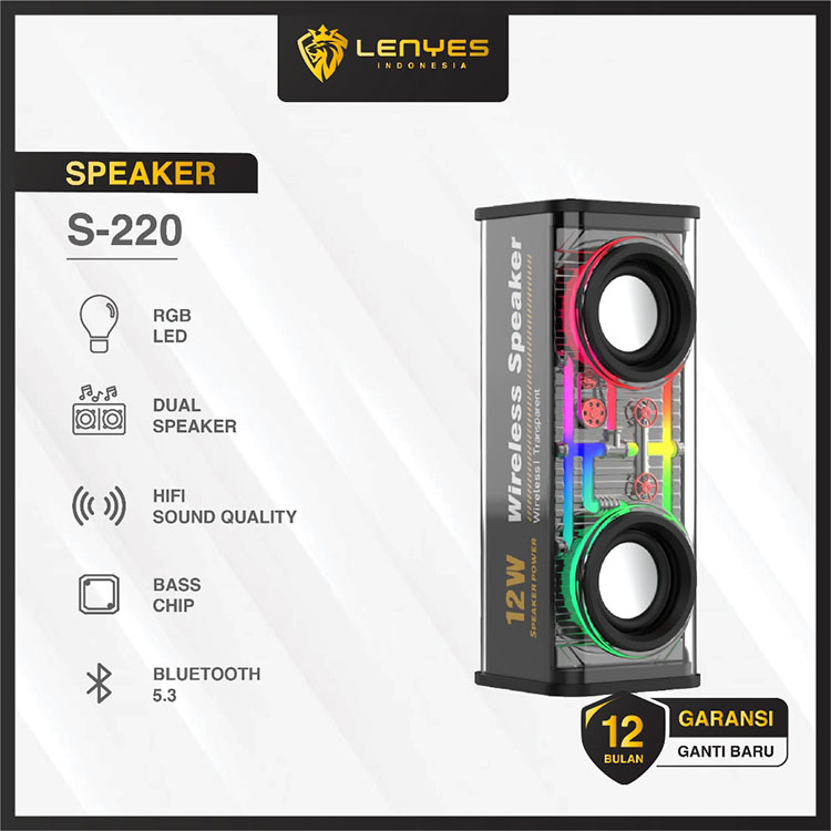 [Star] Lenyes S220 12w Mini Transparan Wireless Speaker Bluetooth 5.3 Transparant Rgb Led Light Tws Portable/Music Box