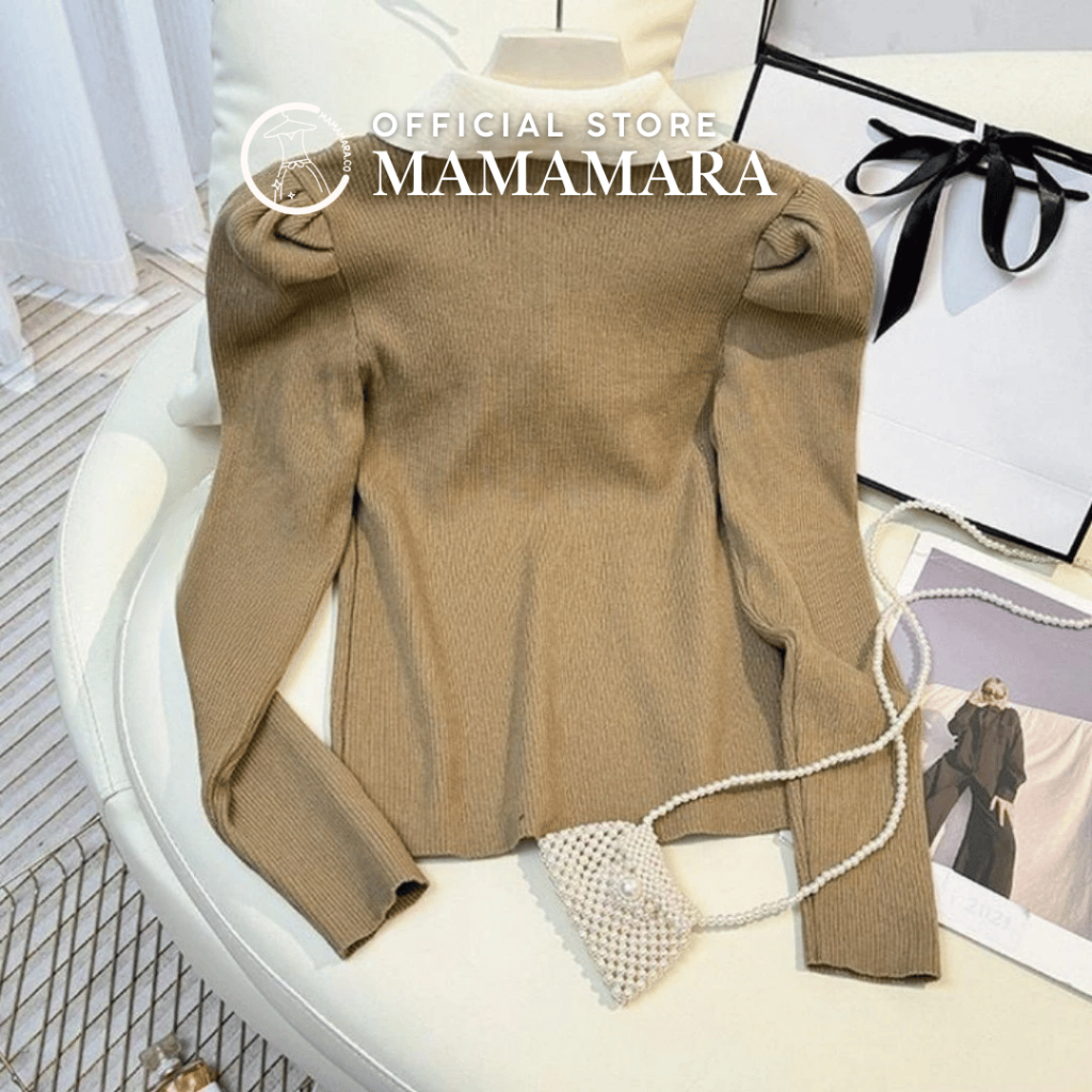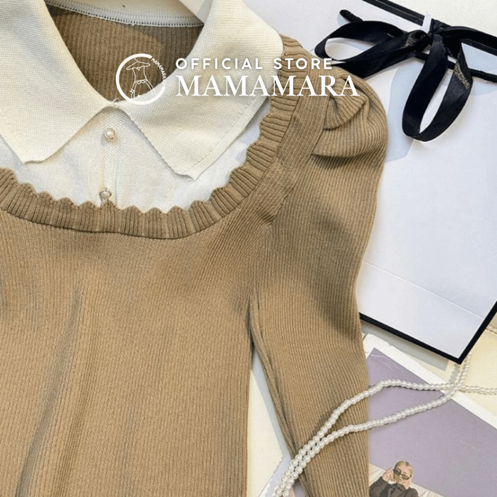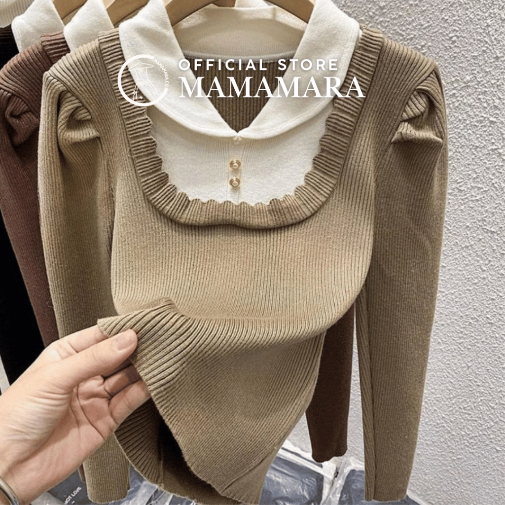 MAMAMARA - Atasan Wanita Lace Kerah Rajut Knitwear Inner Fit Body Wol Santai