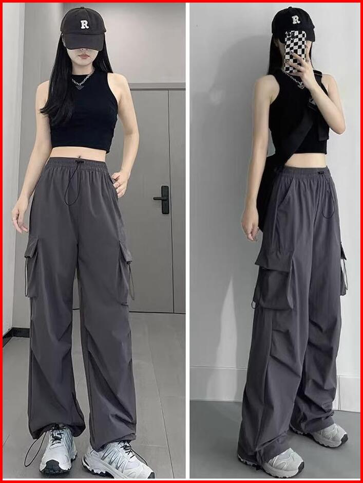 Cargo Celana Panjang Kekinian Korean Fashion New Kasual Highwaist Loose Cargo Celana Polyester Wanita