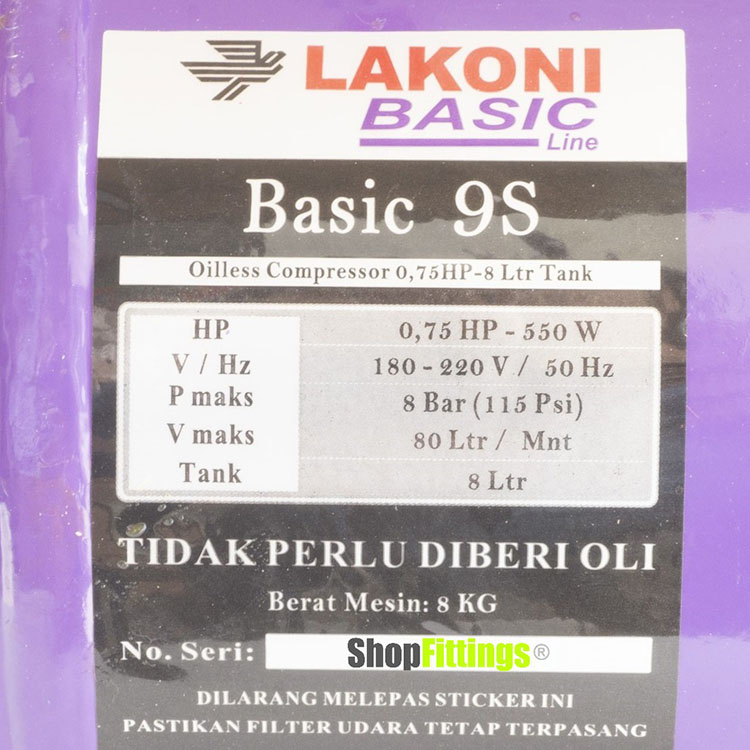 LAKONI 9 S Basic S9 Kompresor Angin 8 Liter OilLess SILENT Air Compressor Low 550 Watt
