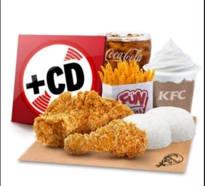 Kombo Extra 1pc Chicken, Kombo Extra 2pcs Strips, Burger Party 1, Burger Party 2, Burger Party 3, Black Sesame Sweet Balls 2 pcs, Black Sesame Sweet Balls 4 pcs, Classic Combo, Classic 2, Classic 3, Classic 5, Classic 7, Breakfast Combo 1, Breakfast Combo 2, Kombo OR Burger Single, Family Combo 1, Family Combo 2, Super Star Combo 1, Super Star Combo 2, Super Star Combo 3, Chaki Meal A Coloring Kit, Chaki Meal B Coloring Kit, Whole Chicken, Winger Bucket, Snack Bucket BBQ 1, Snack Bucket BBQ 2, 2PCS Chicken, KFC Winger, Crispy Strips, 1pcs Chicken, Lengkap Berdua 1, Lengkap Berdua 2, Winger Bucket Deal, Super 9 Plus, Super 7 Plus, Kombo Nescafe 1, Kombo Nescafe 2, Kombo Nescafe 3, Super Besar New 1, Super Besar New 2, Cream Puff 1 Pcs, Cream Puff 2 Pcs, Cream Puff 5 Pcs, Cream Soup, Mocha Float, Spaghetti Supreme, Spaghetti deluxe, sesuai gambar