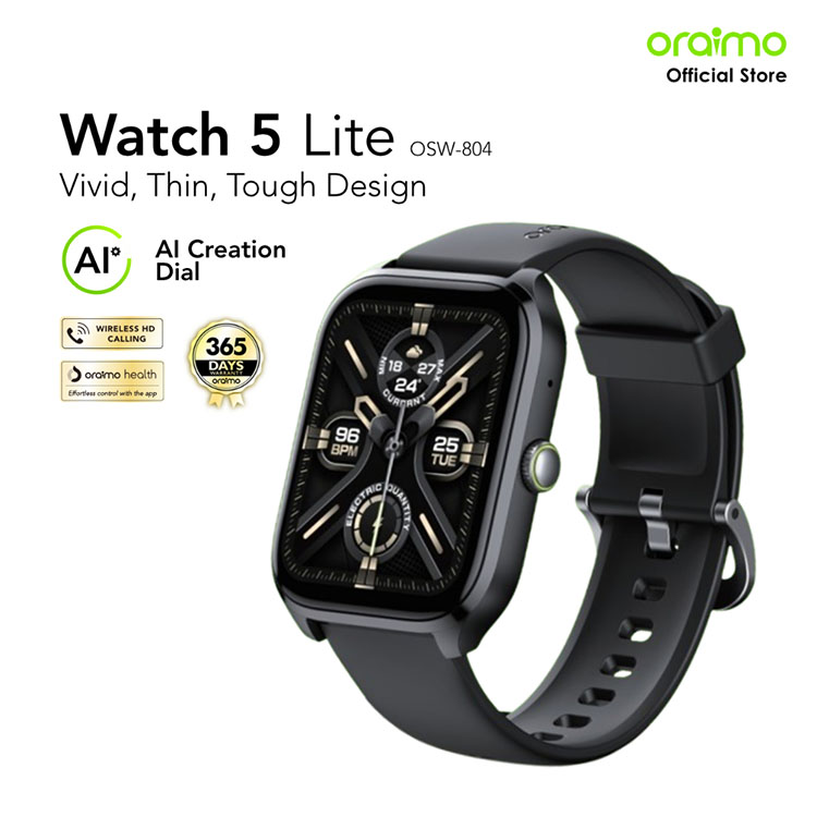 Oraimo Watch 5 Lite Jam Tangan Pintar Smartwatch Layar 2.01'' Amoled Bluetooth Call 100+ Mode Sport Long Battery Life