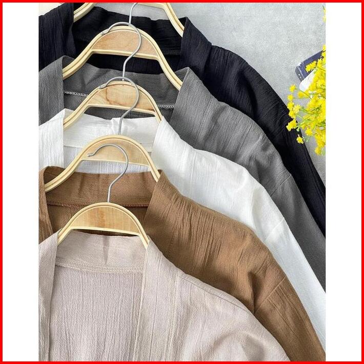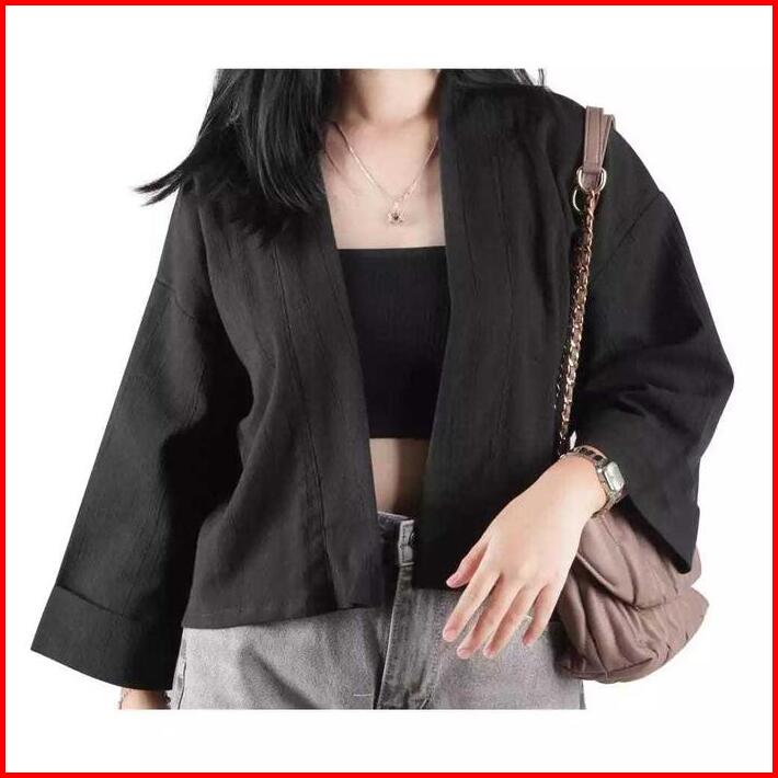 Belia Outer Crop Wanita Lengan 3 4 Linen Crinkle