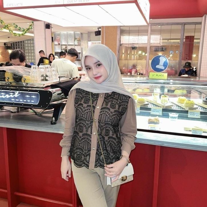 Atasan Wanita Kekinian Basic Blouse Miska Burkat Korean Style Baju Casual Lengan Panjang
