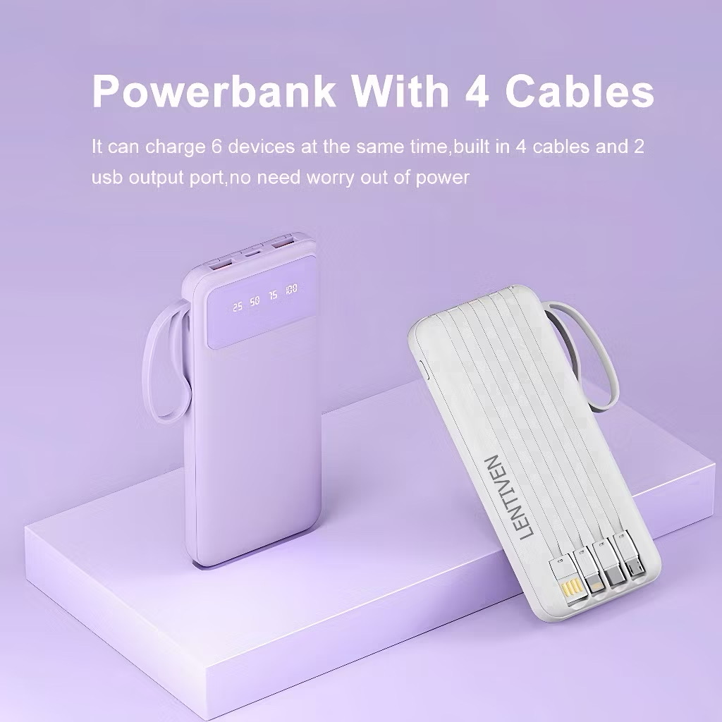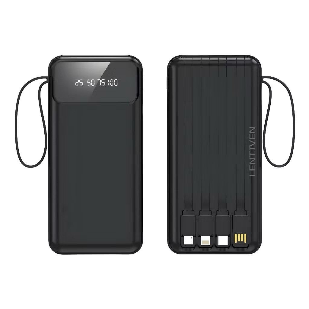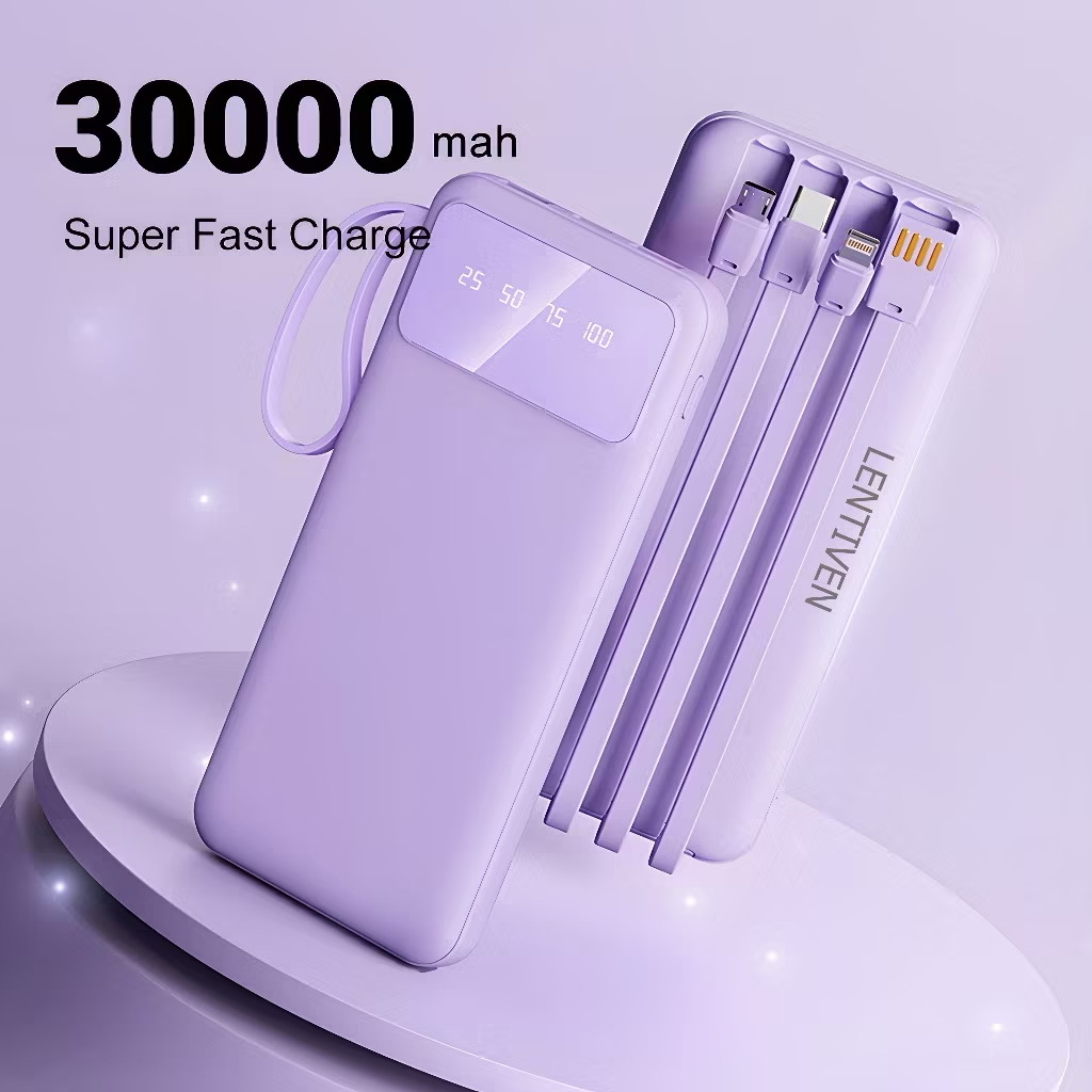 LENTIVEN Powerbank 30000mAh Fast Charging 4 KABEL Lightning & Type C For Iphone/Android