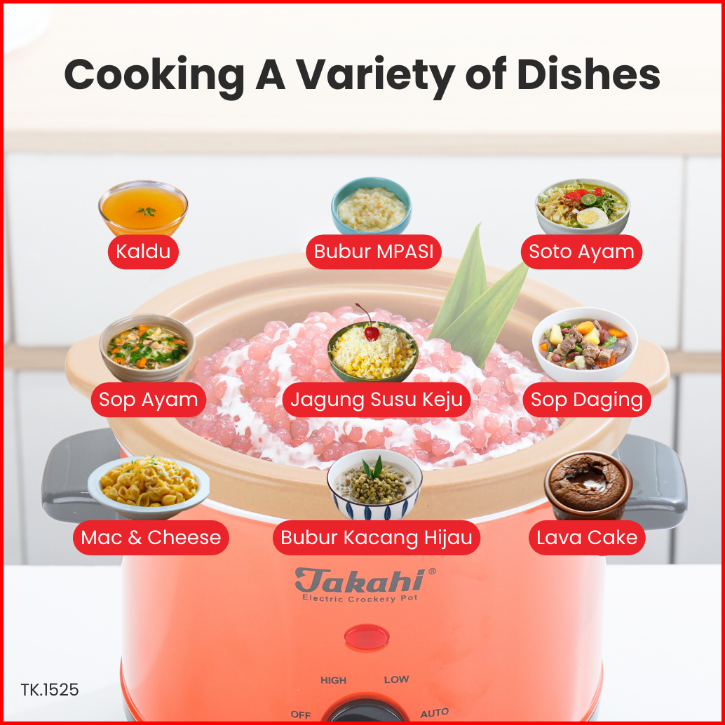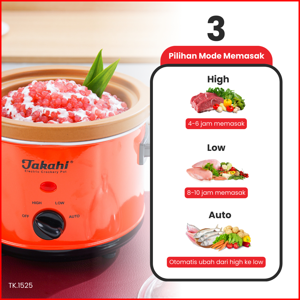 Takahi Electric Crockery Pot 1.5 Liter Include Palet Slow Cooker
