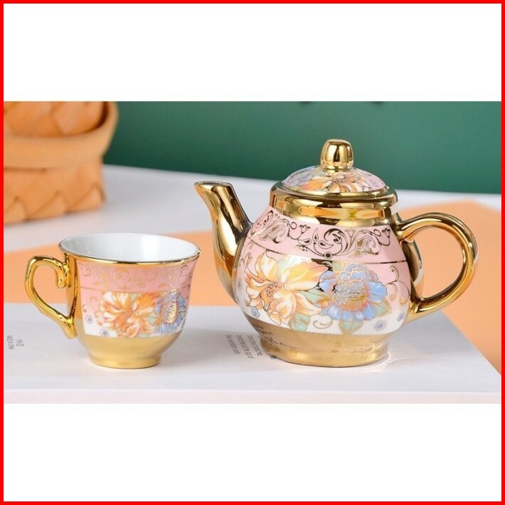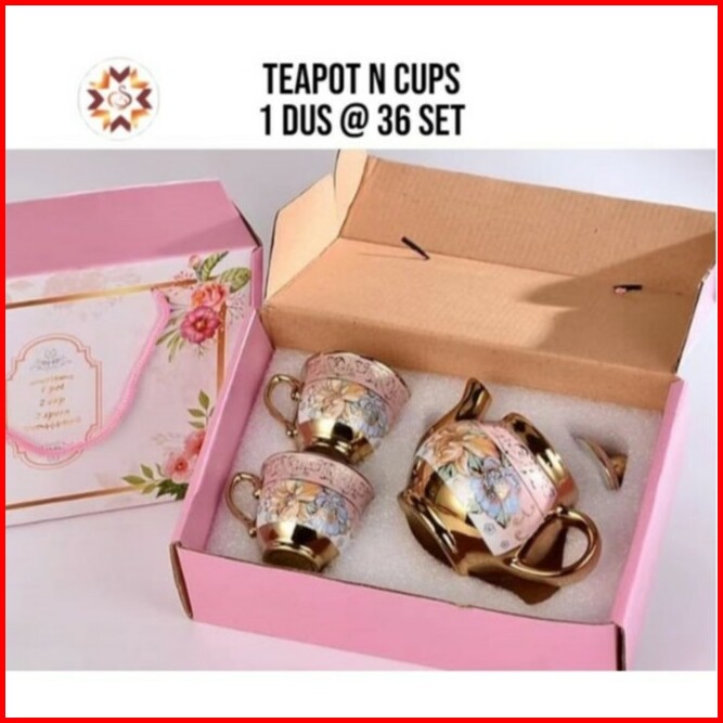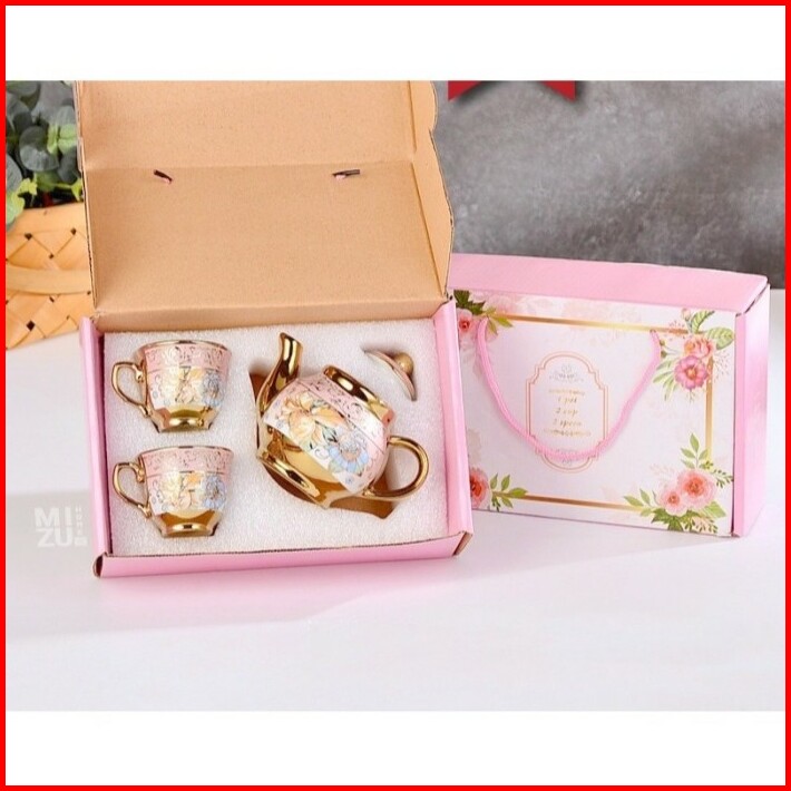 Teapot Set Teko Keramik Cangkir 3 In 1 Motif Bunga Eropa Style