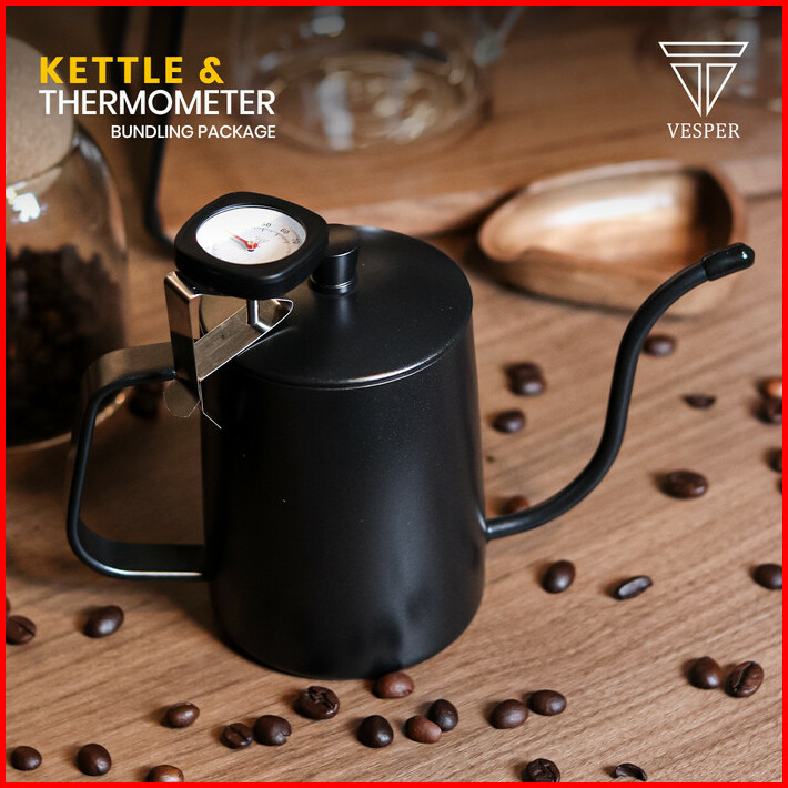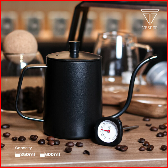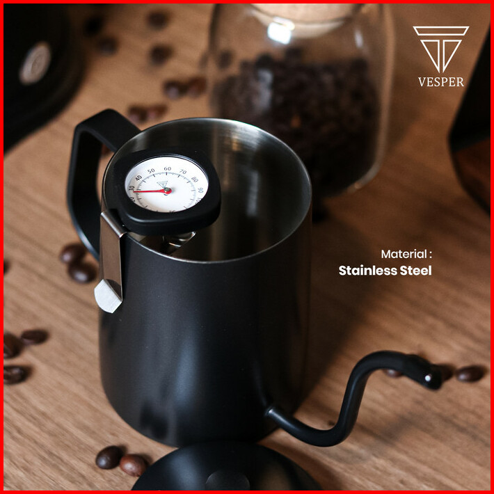 Teko Gooseneck Thermometer Teko Kopi Hitam Teflon Coffee Pot V60