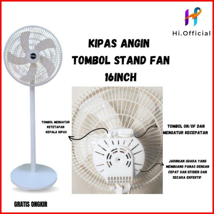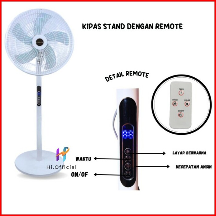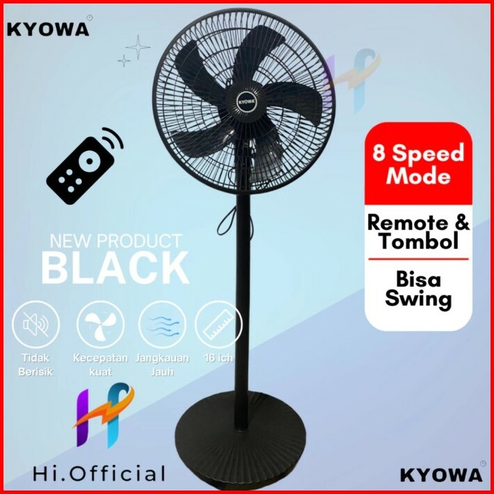 Kipas Angin Standing Kyowa Kw-1608a Kipas Berdiri Dengan Tutup 5 Baling Baling Kipas Remote Desain Modern