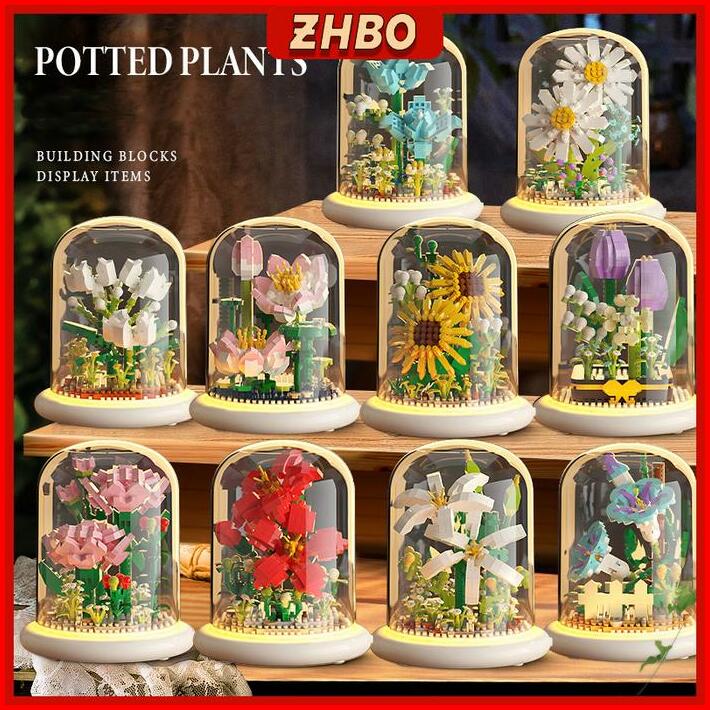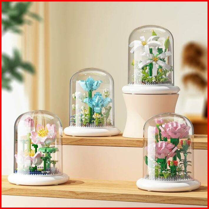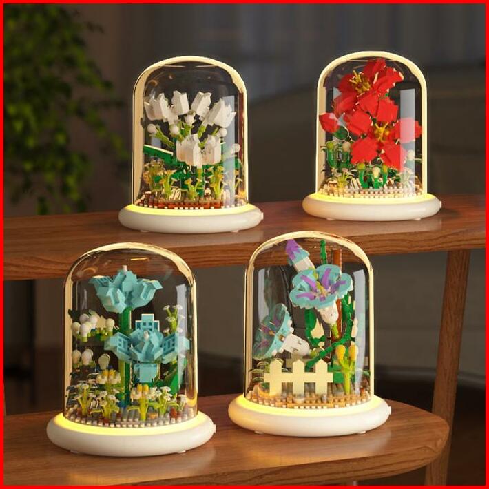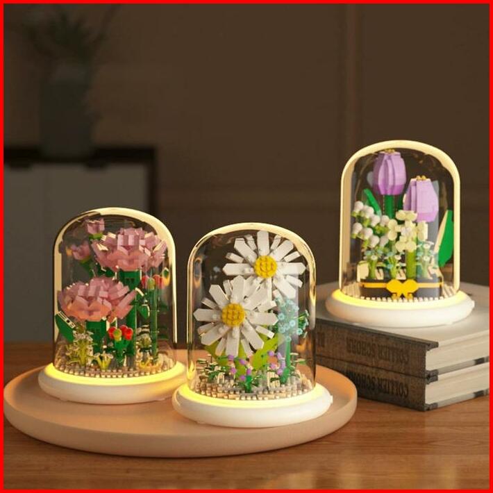 Menerangi Mainan Balok Bunga Bricks Flower Kreatif Untuk Diy Bunga Keabadian Yang Romantis 3d Puzzle Mainan Hadiah