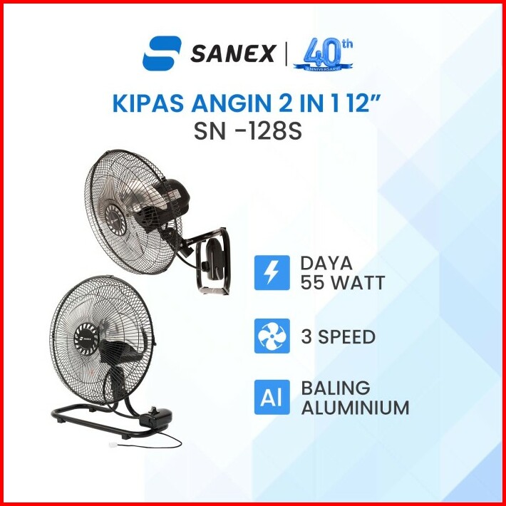 Sanex Kipas Angin Dinding 2in1 12 Inch Sn-128 S