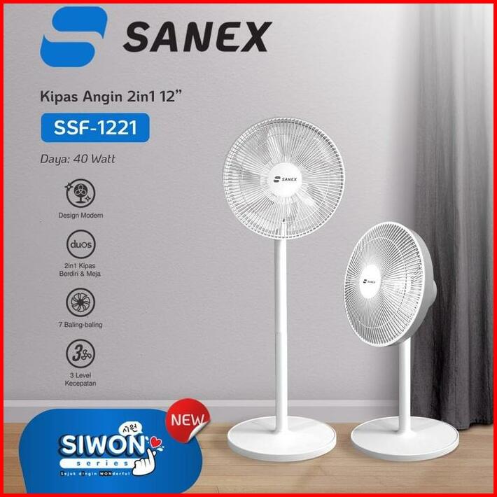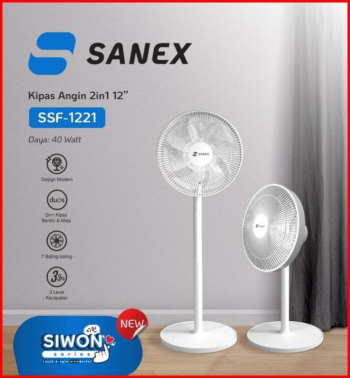 Sanex Stand Desk Fan Kipas Angin Meja Berdiri 2 In 1 12 Inch 7 Baling Ssf-1221 N R Design Modern Minimalis Baling Bening