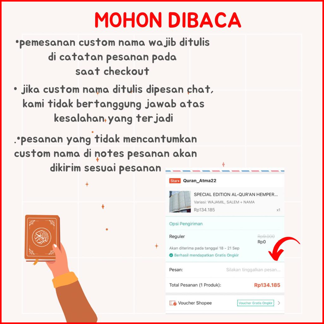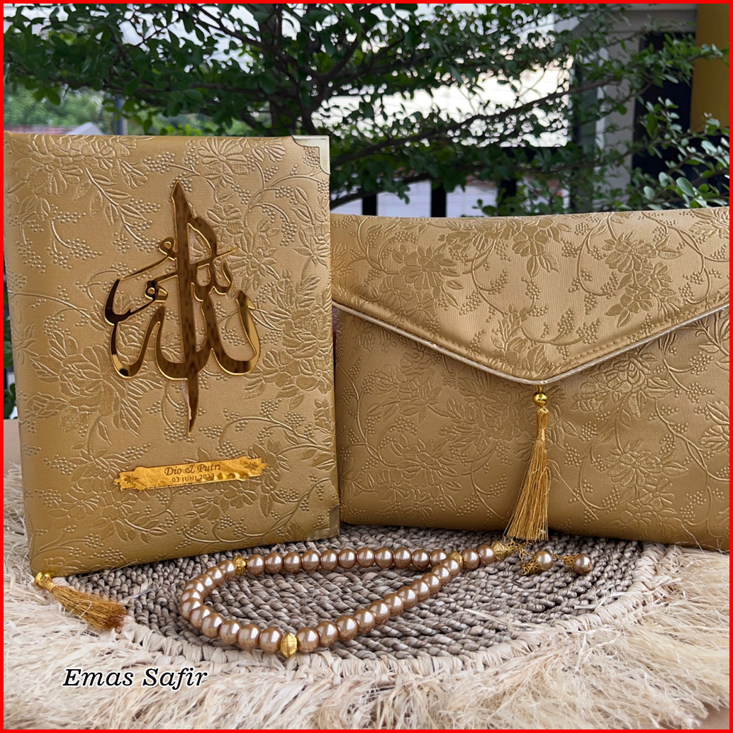 Al-qur An Custome Nama De Flower Clasic Pouch. Free Tasbih Premium 33 Butir