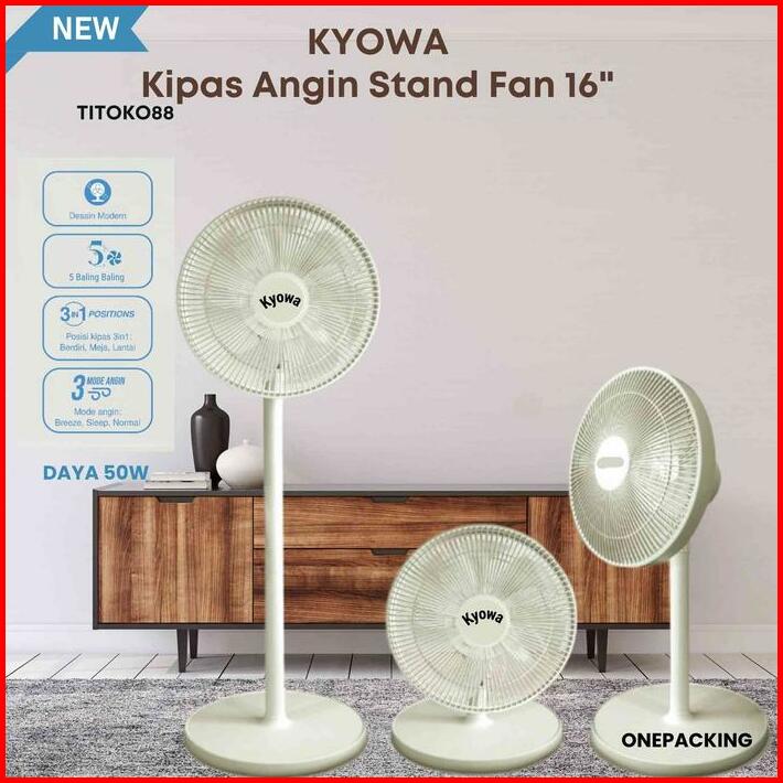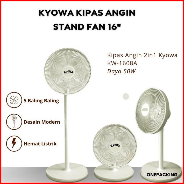 Kipas Angin Standing Kyowa Kw-1608a Kipas Berdiri 2in1 5 Baling Baling Kipas Remote Desain Modern