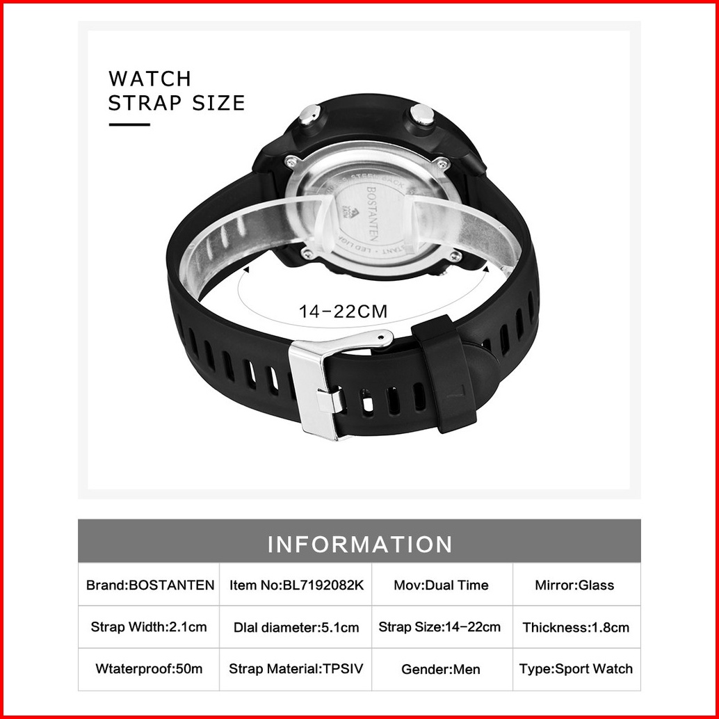 Bostanten Jam Tangan Pria 2082 Jam Tangan Digital Tahan Air