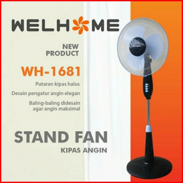 Welhome Stand Fan Kipas Angin Berdiri 16 Inchi Wh 1681 Hitam Promo