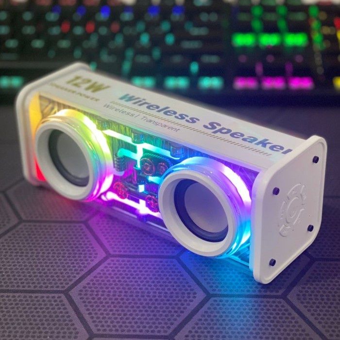 LENYES S220 TWS Speaker Bluetooth Wireless V5.3 Transparant Smart RGB Light HiFi Sound Bass Powerfull 12W
