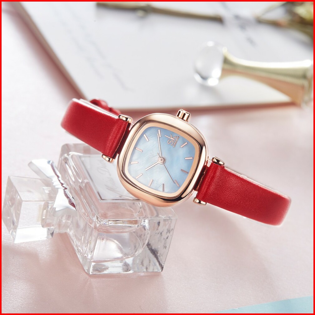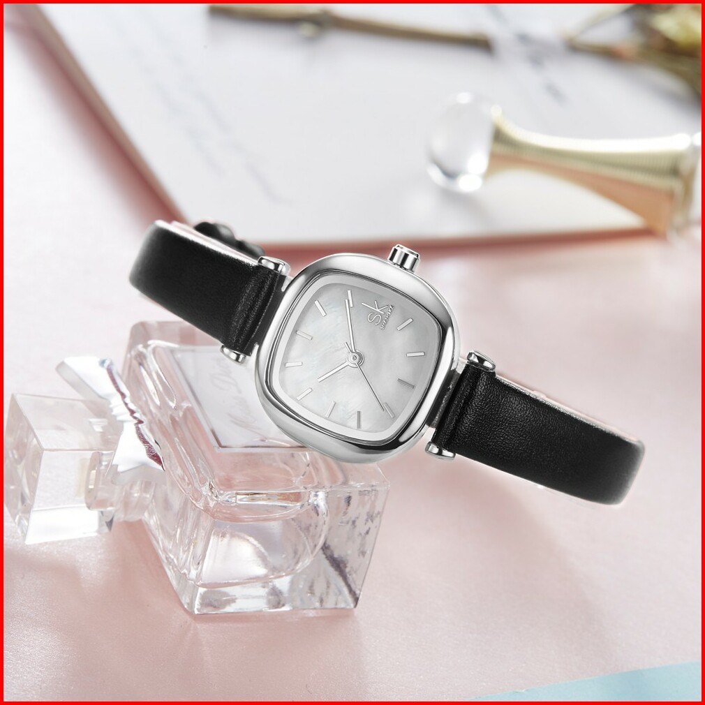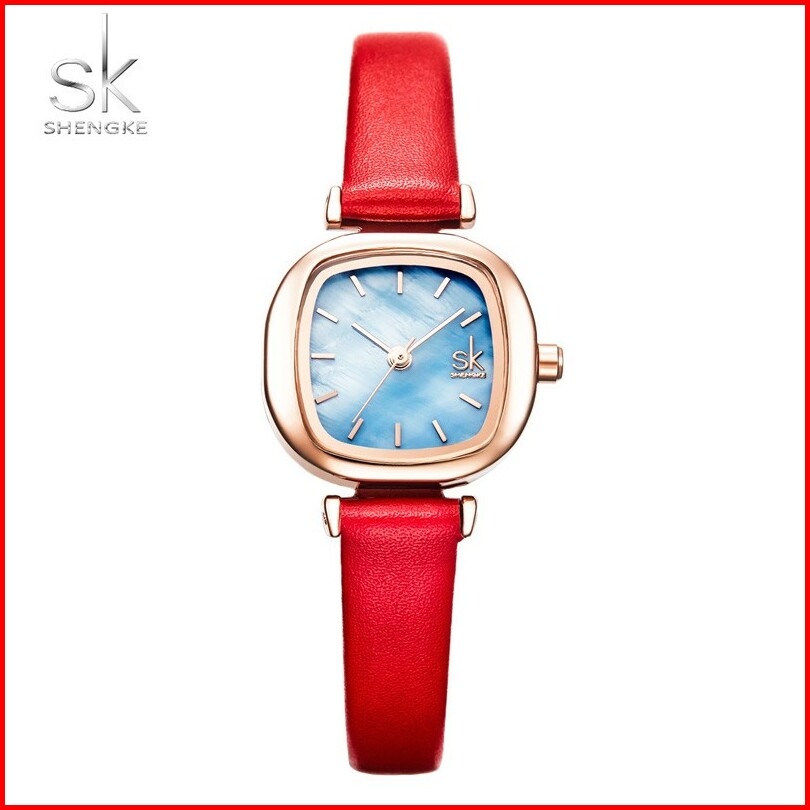 Shengke 8052 Jam Tangan Wanita Analog Tali Kulit Pearl Shell Korean Design Currenos