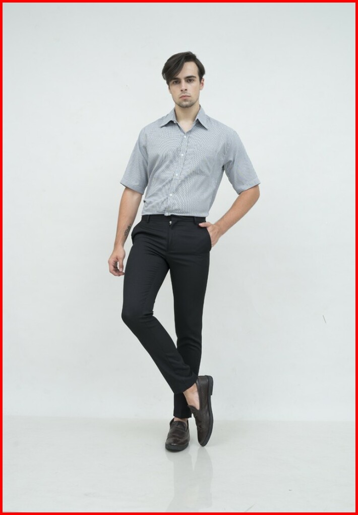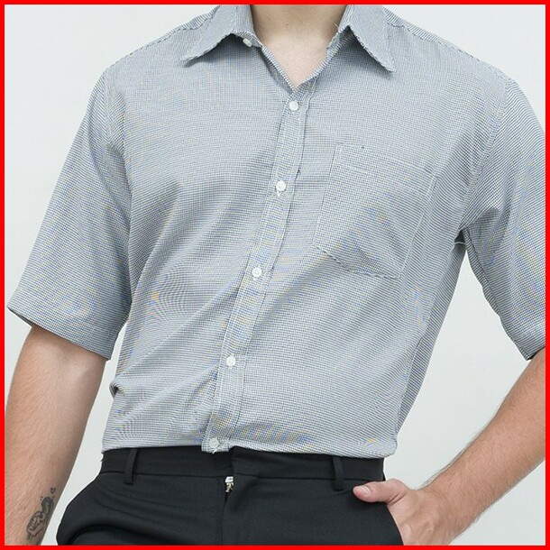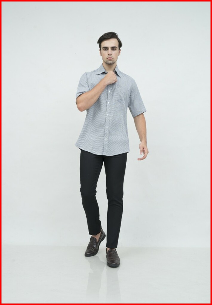 Kemeja Slim Fit Lengan Pendek Pria Kerja Hitam Houndstooth Houseofcuff