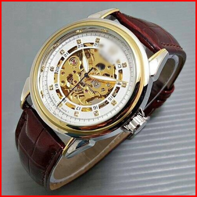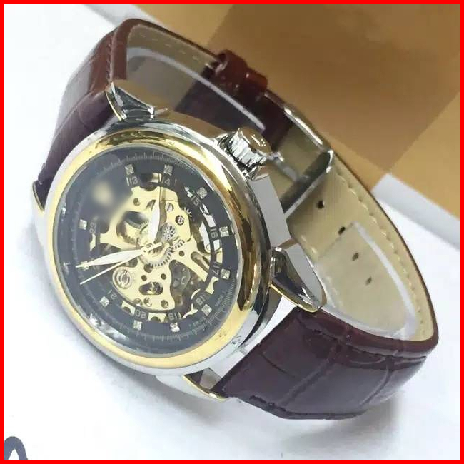 Jam Tangan Skeleton Kulit Classic Otomatis Tanpa Baterai Pria