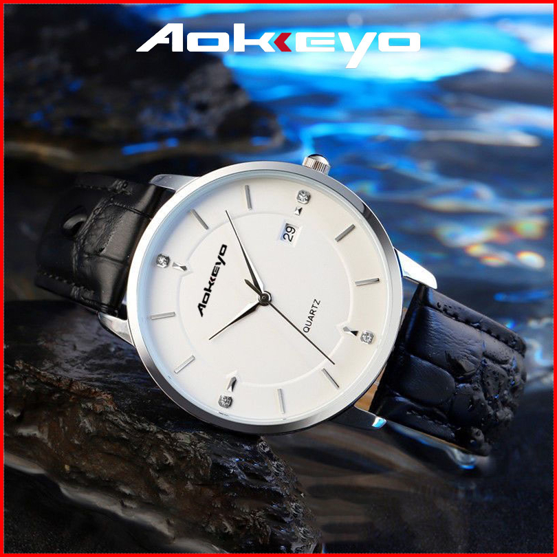 Aokeyo S79 Jam Tangan Pria Kulit Anti Air Original Analog Model Classic Tali Pu Leather Jam Tangan Cowok Free Box Kartu