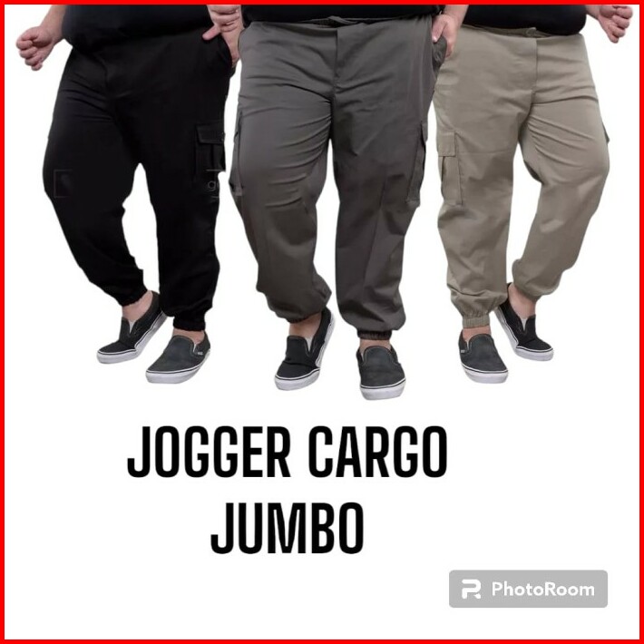 Celana Jogger Cargo Big Size Pria 38-44 Jumbo Strecth Pinggang Karet