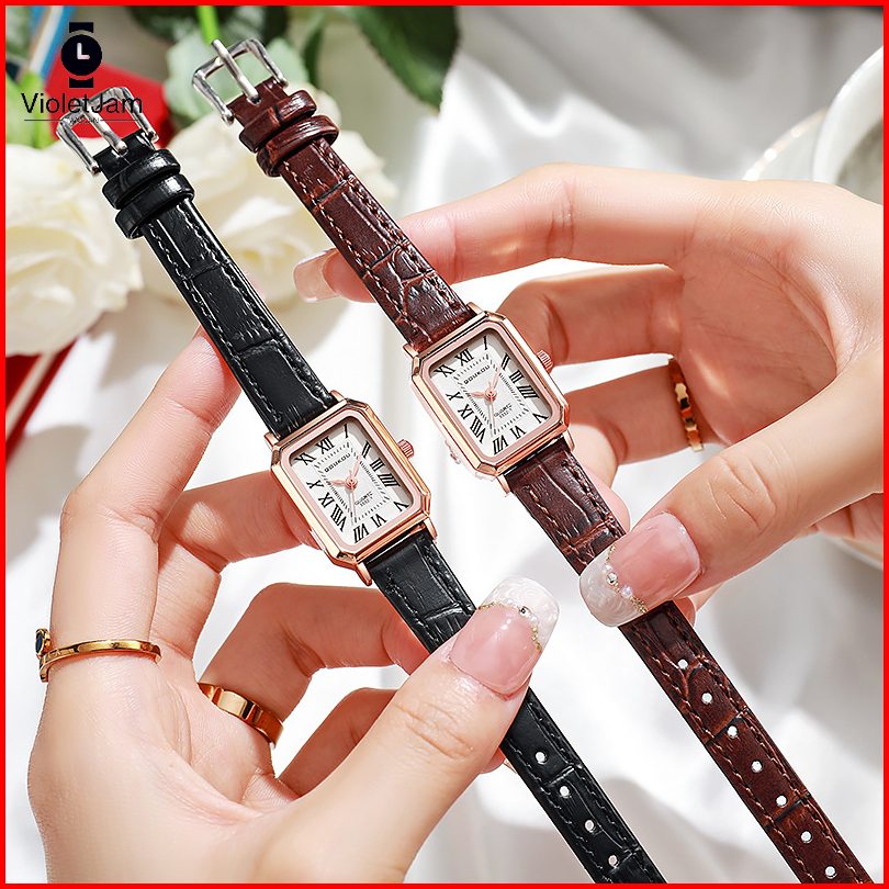 Jam Tangan Wanita Original Jam Vintage Analog Elegant Jam Tali Kulit Asli Korea Fashions