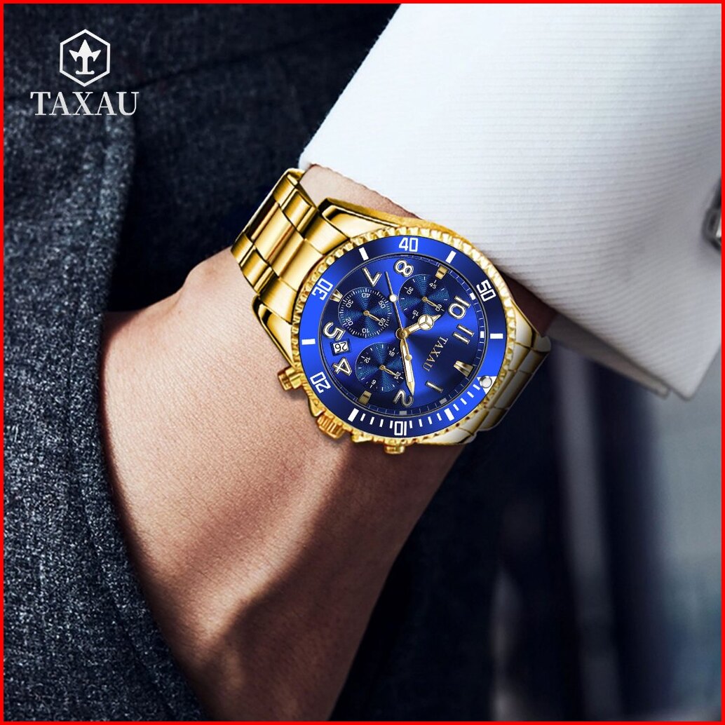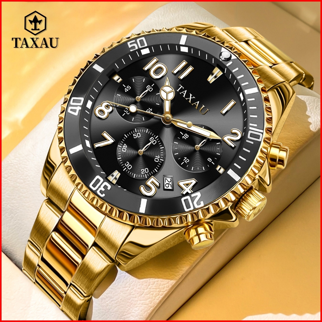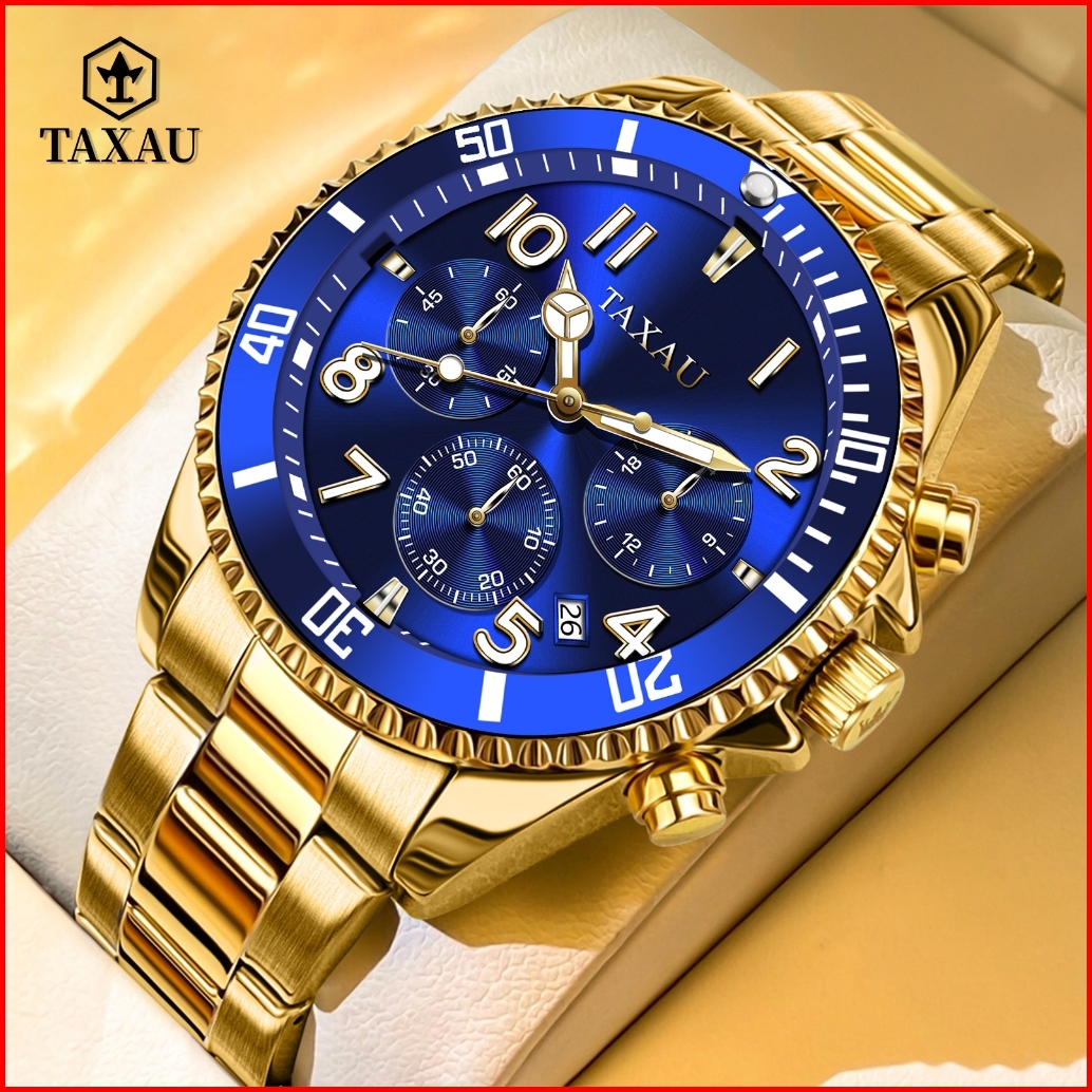 Taxau Jam Tangan Pria Original 100 Rantai Terbaru Anti Air Mewah Analog Stainless Steel Men Watch