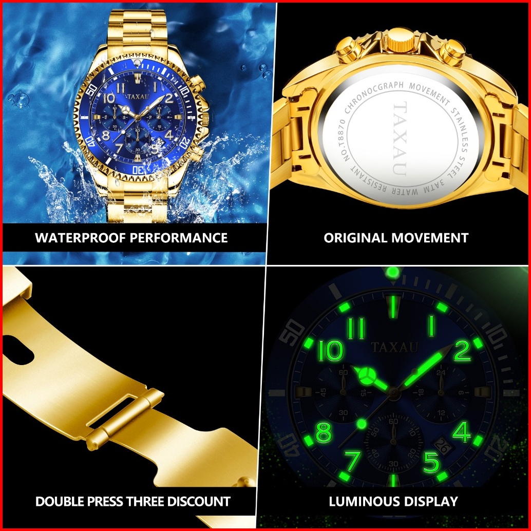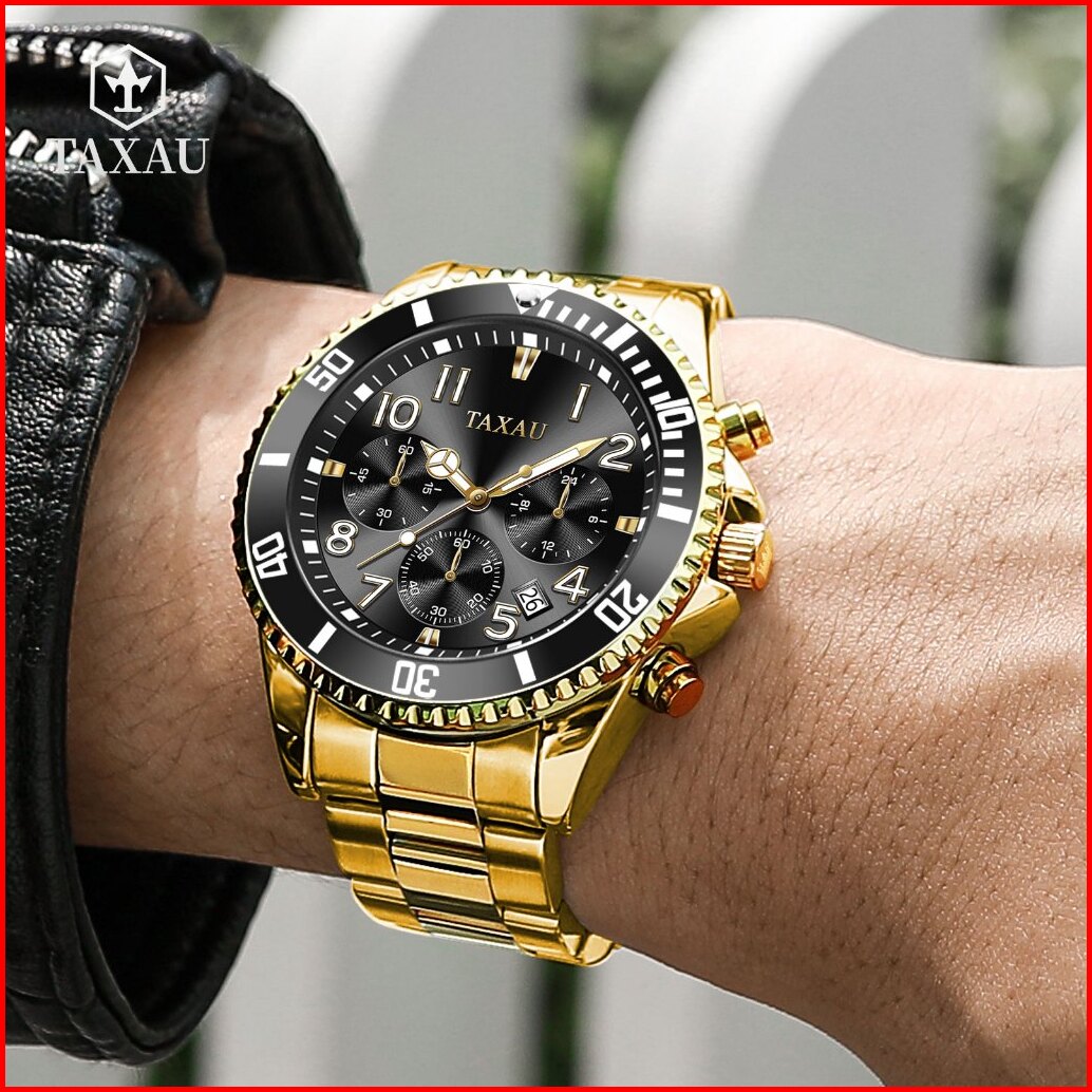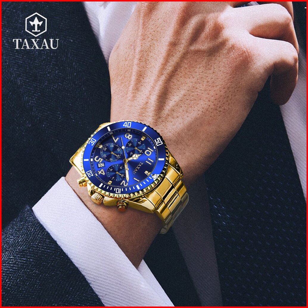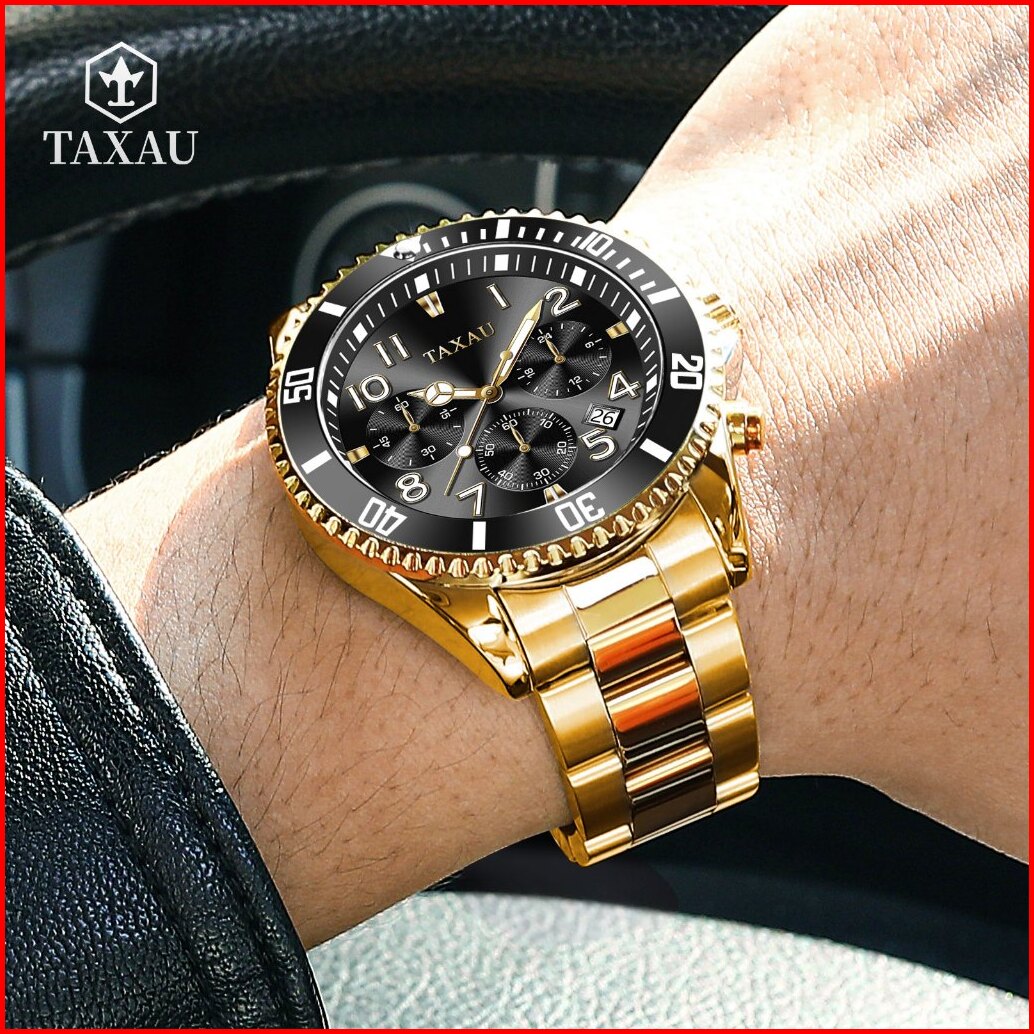 Taxau Jam Tangan Pria Original 100 Rantai Terbaru Anti Air Mewah Analog Stainless Steel Men Watch