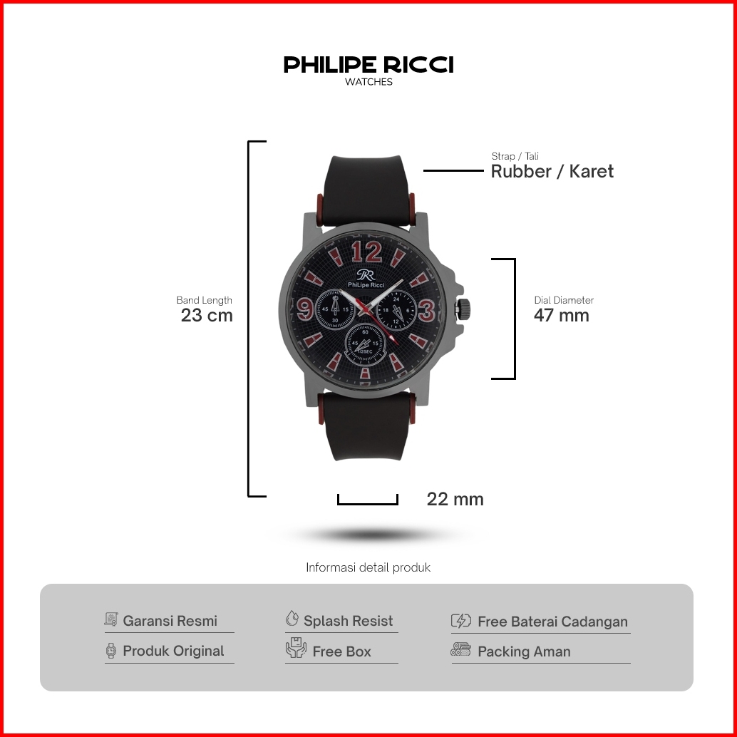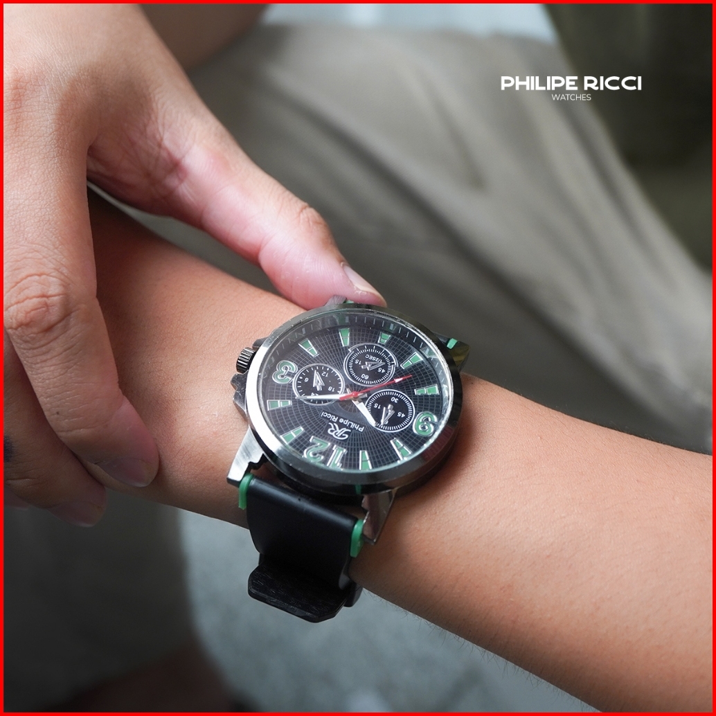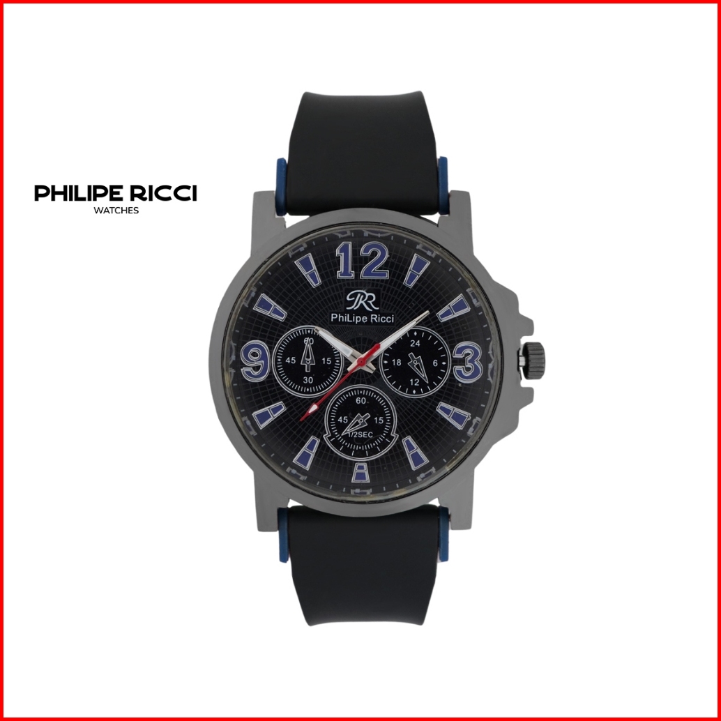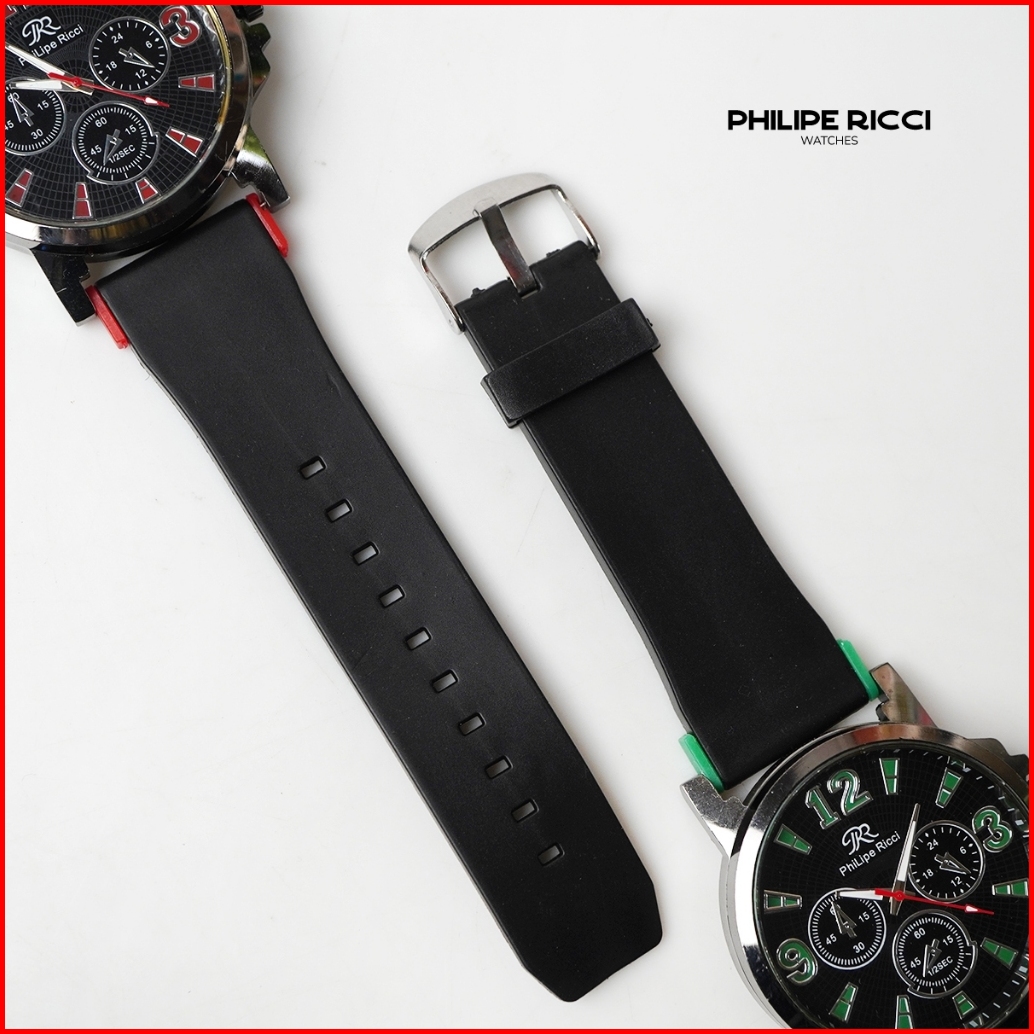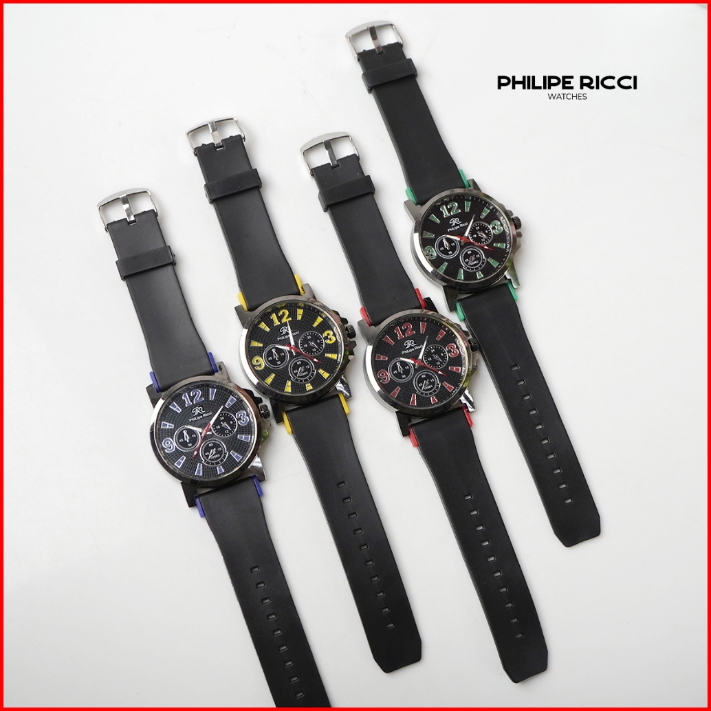Philipe Ricci Jam Tangan Pria Karet Analog Hitam Terbaru Simple Quartz Pml8 Men Watches Free Box