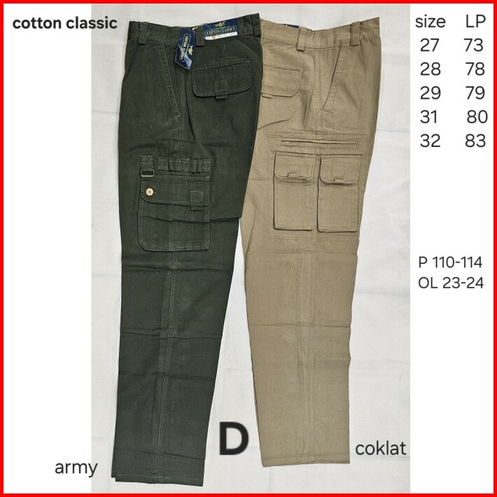 Celana Cargo Pria Panjang Krem Cokelat Khaki Lee Classic