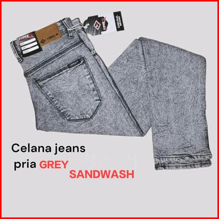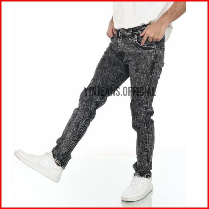 Celana Jeans Pria Bahan Stretch Abu Snow Grey Sandwash Acid Putih Cowok Slimfit Melar Pensil Skini