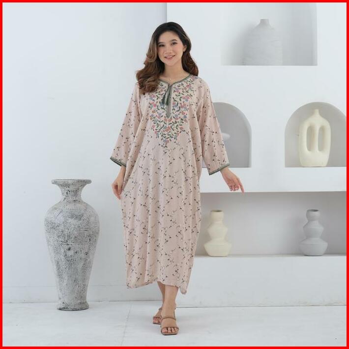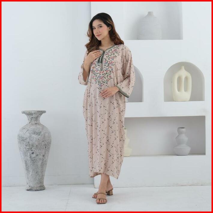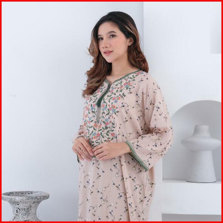 Daster Bordir Lengan Panjang Katun Rayon Motif Premium Kain Lembut Nyaman Ibu Menyusui Hamil Busui Bumil