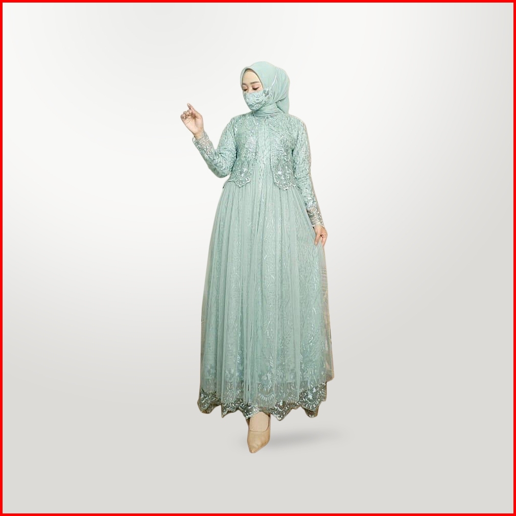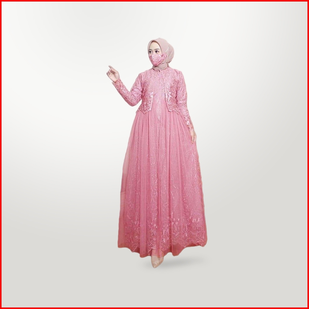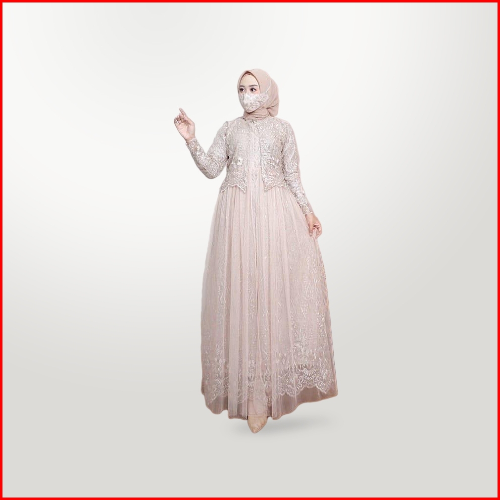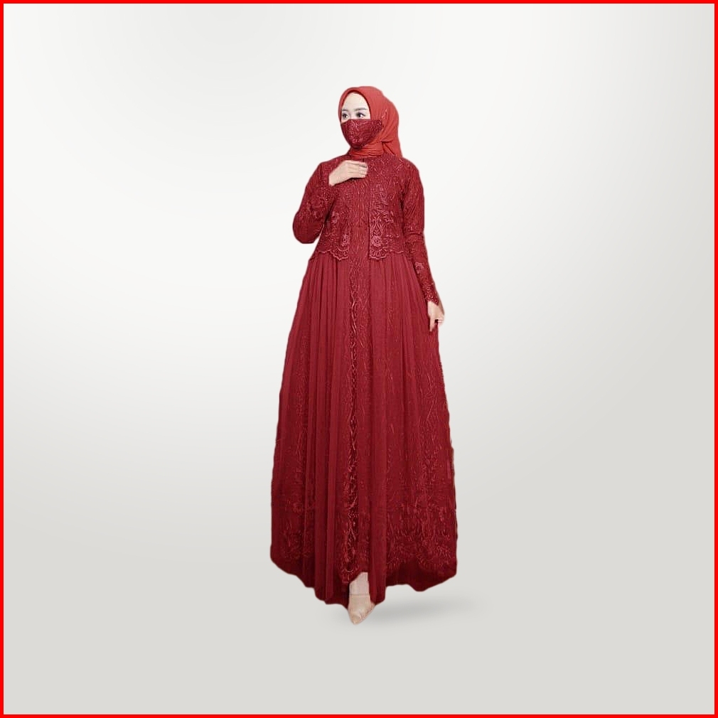 Redlove - Gamis Baju Muslim Dress Sayap Full Brukat Busui