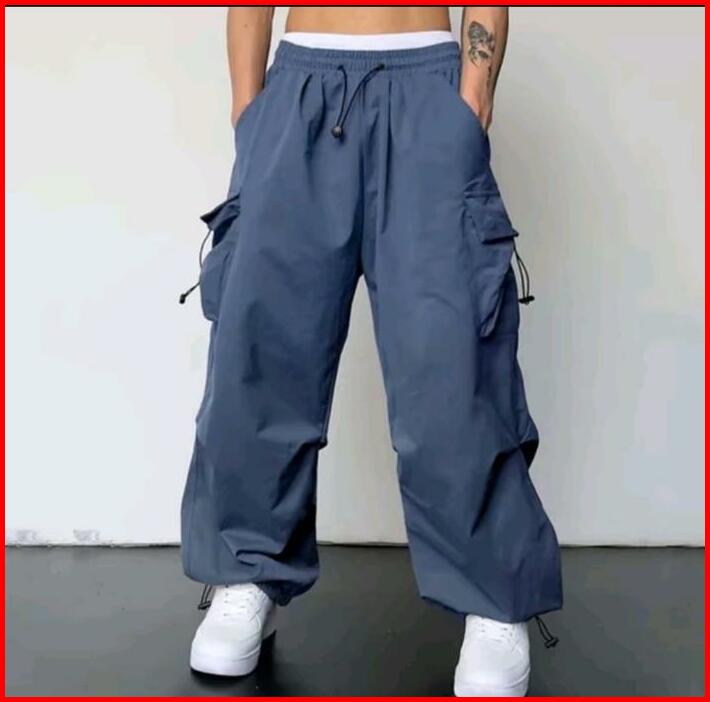 Celana Cargo Pria Model Terbaru Highwaist Korean Stail Casual Dengan Tali Serut Pinggang Karet Keren