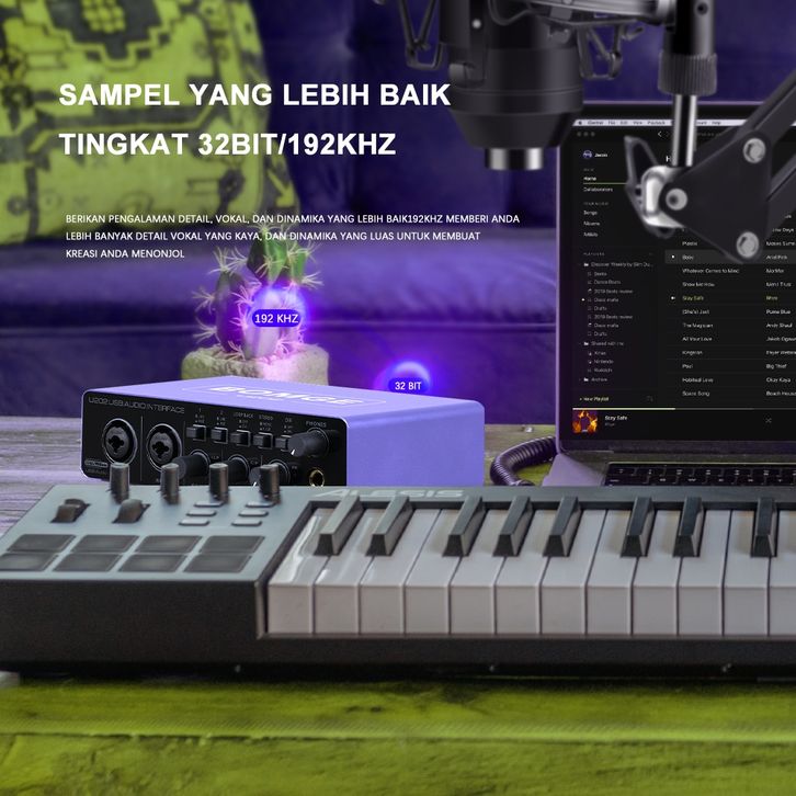 BOMGE U202P USB Audio Interface with Mic Preamplifier XLR/TSR/TS Ports,48V,32-Bit/192kHz Resolution for PC and Mac Reco