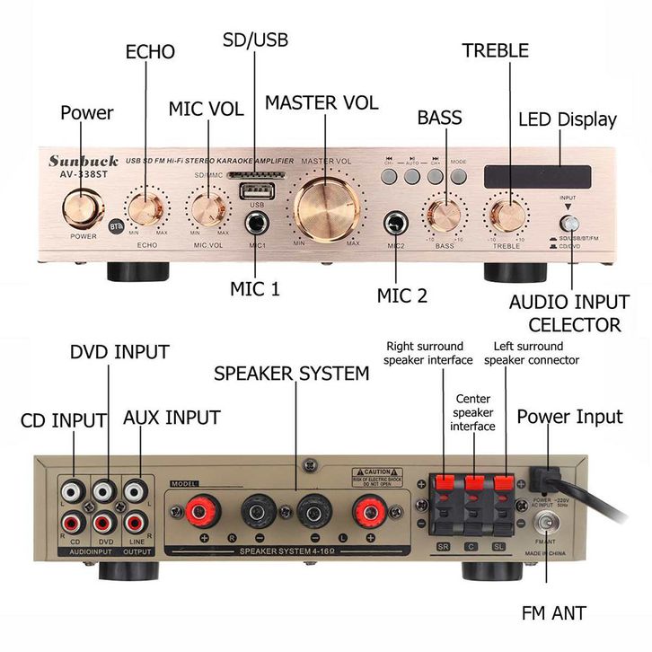 Sunbuck Audio Amplifier Bluetooth EQ Karaoke Home Theater FM 2000W - AV-338ST