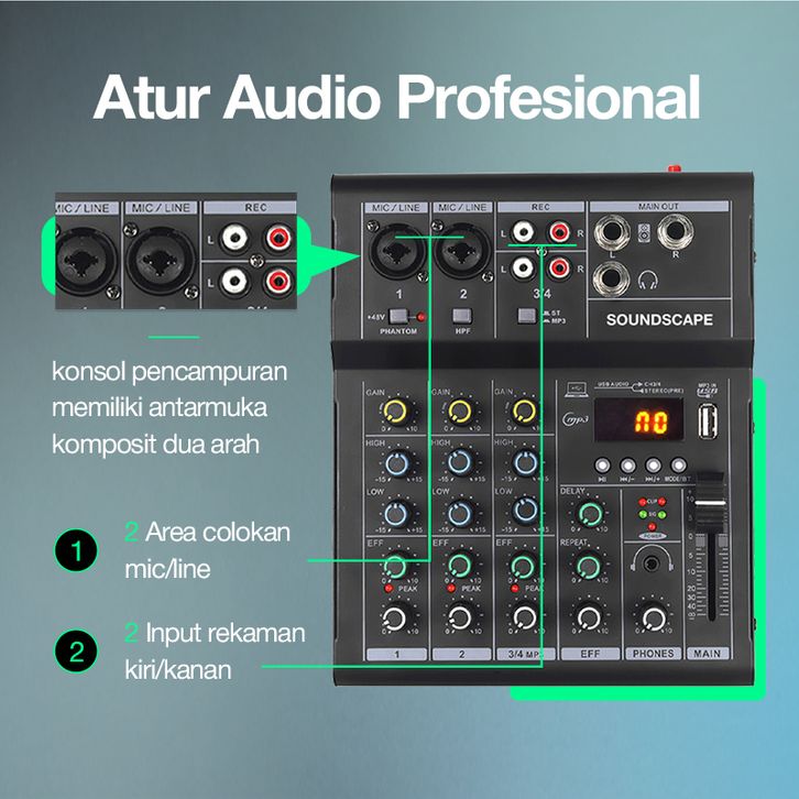 Soundscape【】4-Chanel Mixer Audio / mixer audio/mixer mini /Mixer 4 chanel / KP4 Professional mixer mini/ Amplifier Blue