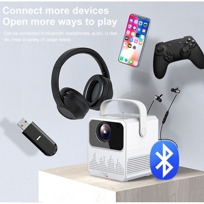 SMARTCOM T2 Mini Proyektor Android TV 1080P Smart Projector 6000 Lumen Android Portable Mirroring HP Home