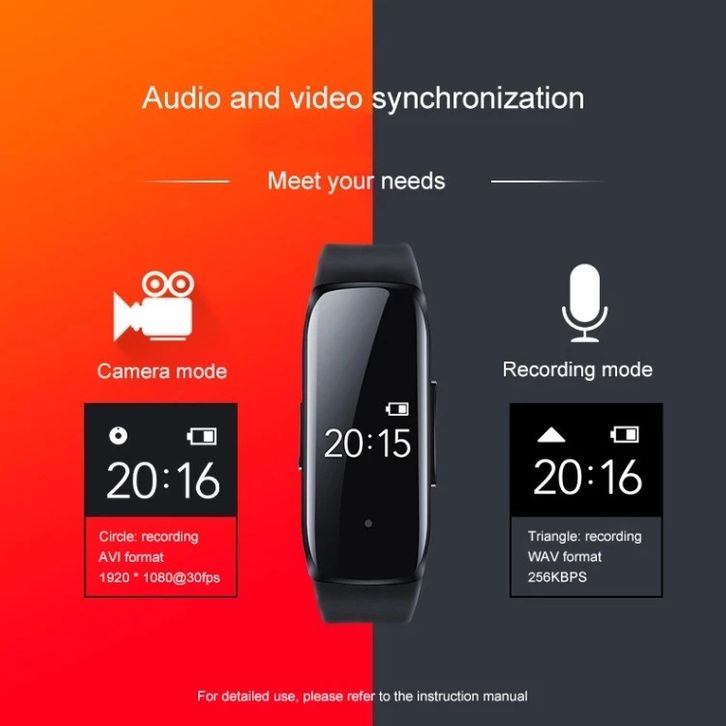 Gemoy Spycam Watch Bracelet 1080P FHD Undetectable Lens Spy - LCD Display Live View Recording Video