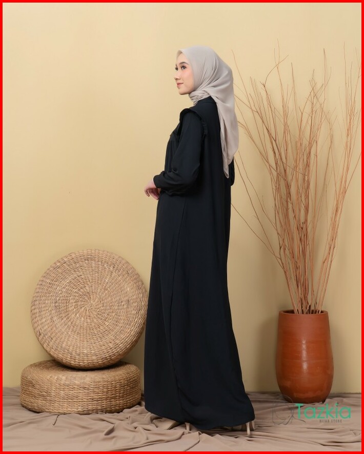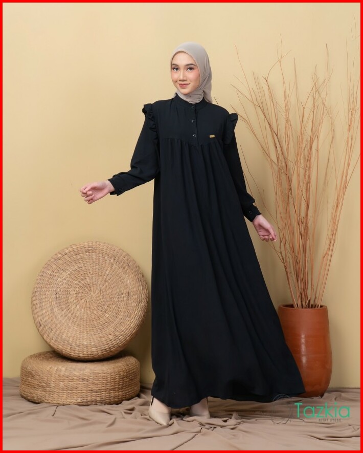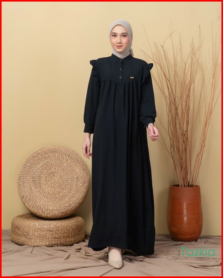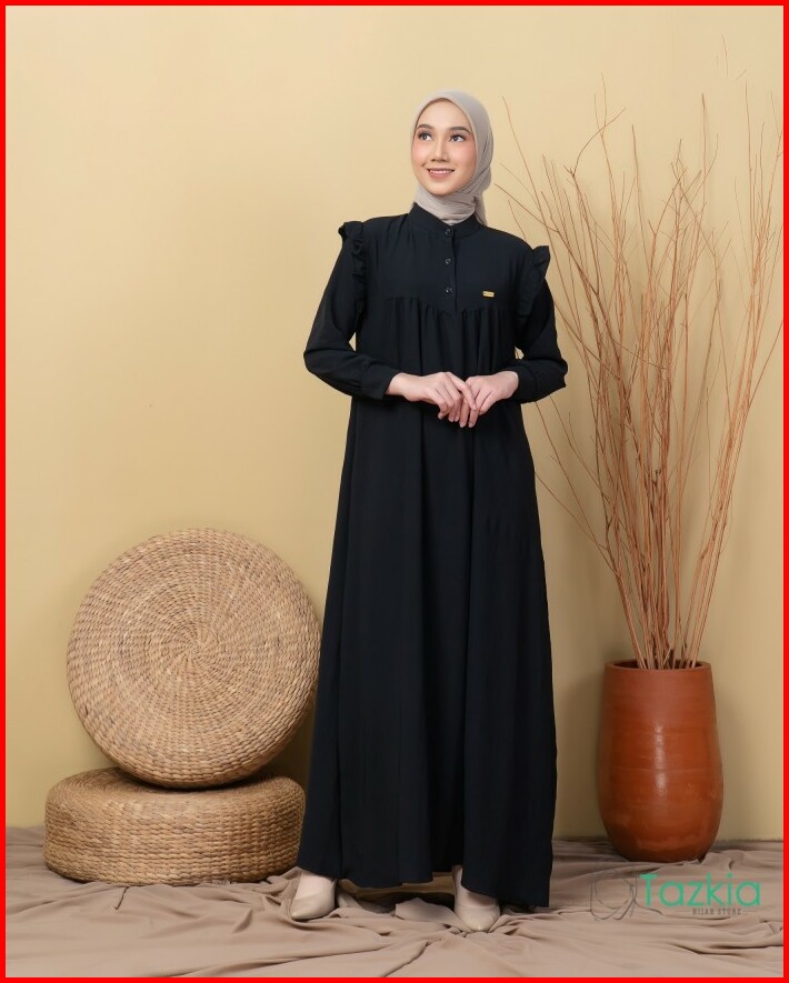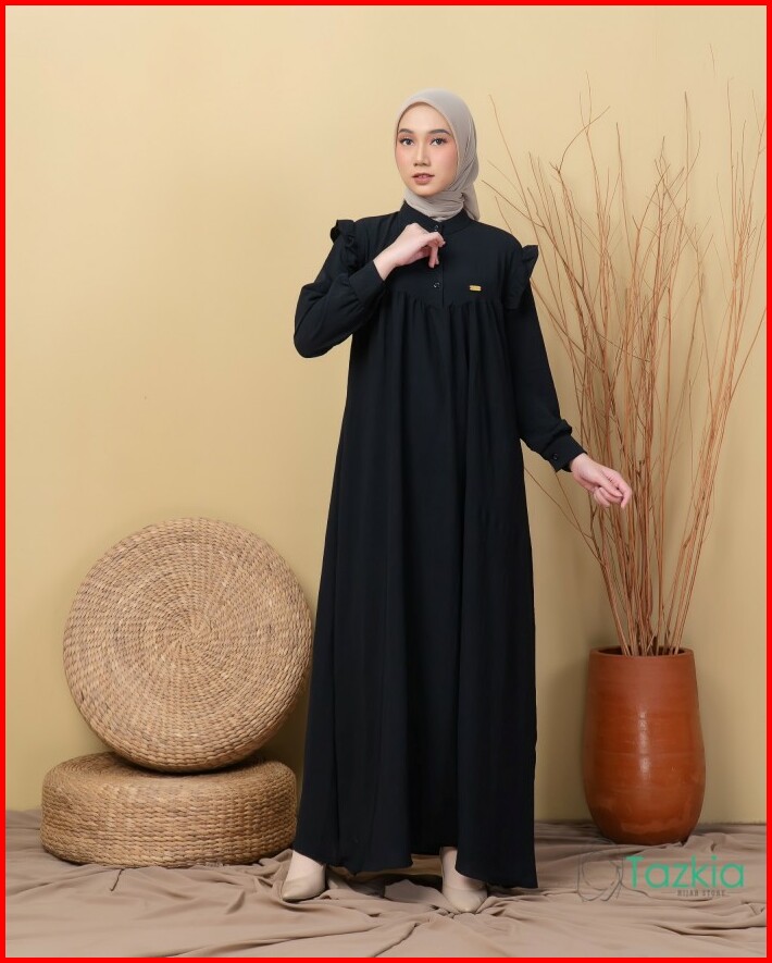 Dress Muslim Wanita Latifa Black Gamis Polos Crinkle Tazkia Hijab